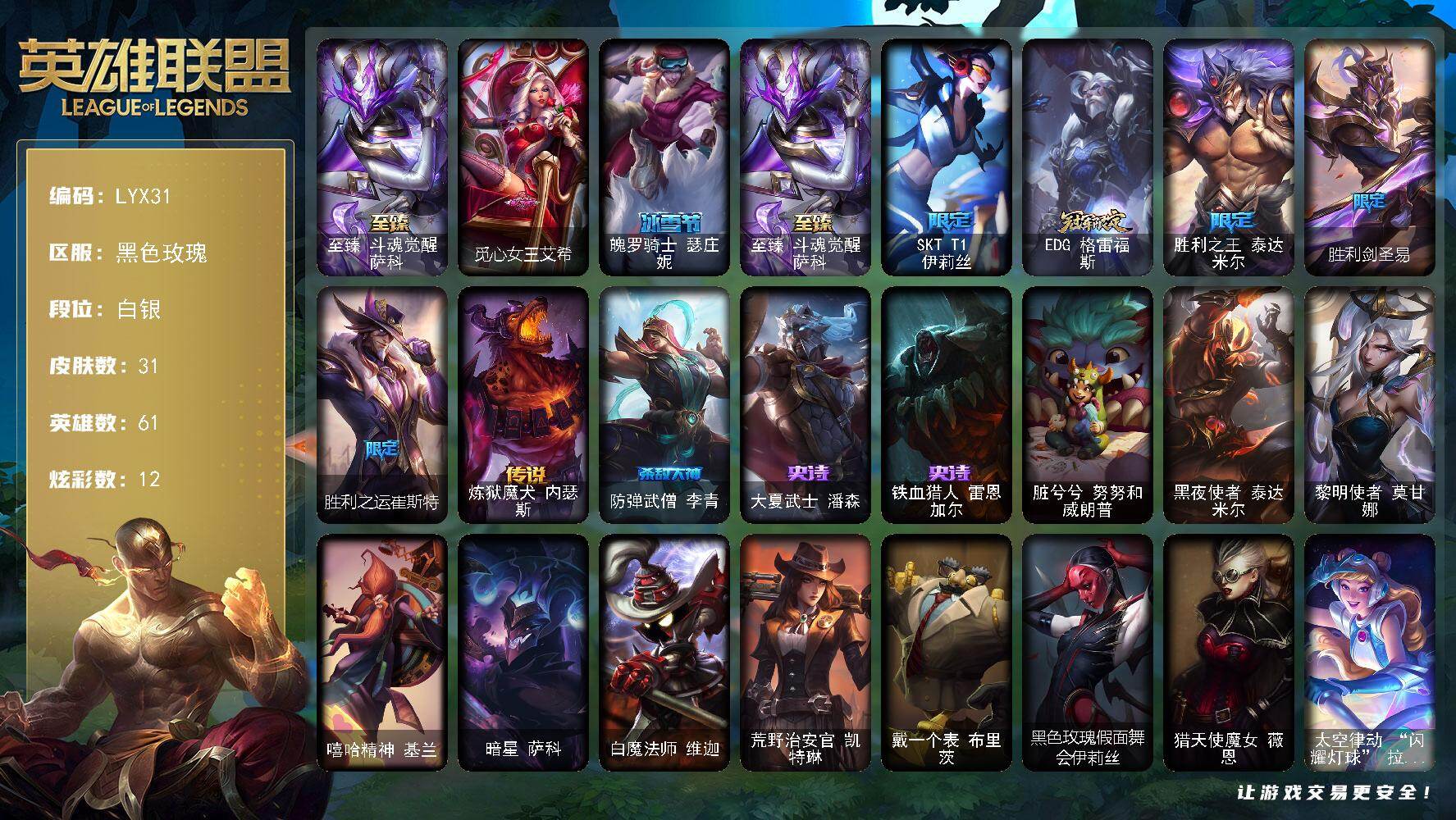 【特价出售/店主推荐】白银段位-61英雄-31皮肤-12炫彩-0终极-1神话-