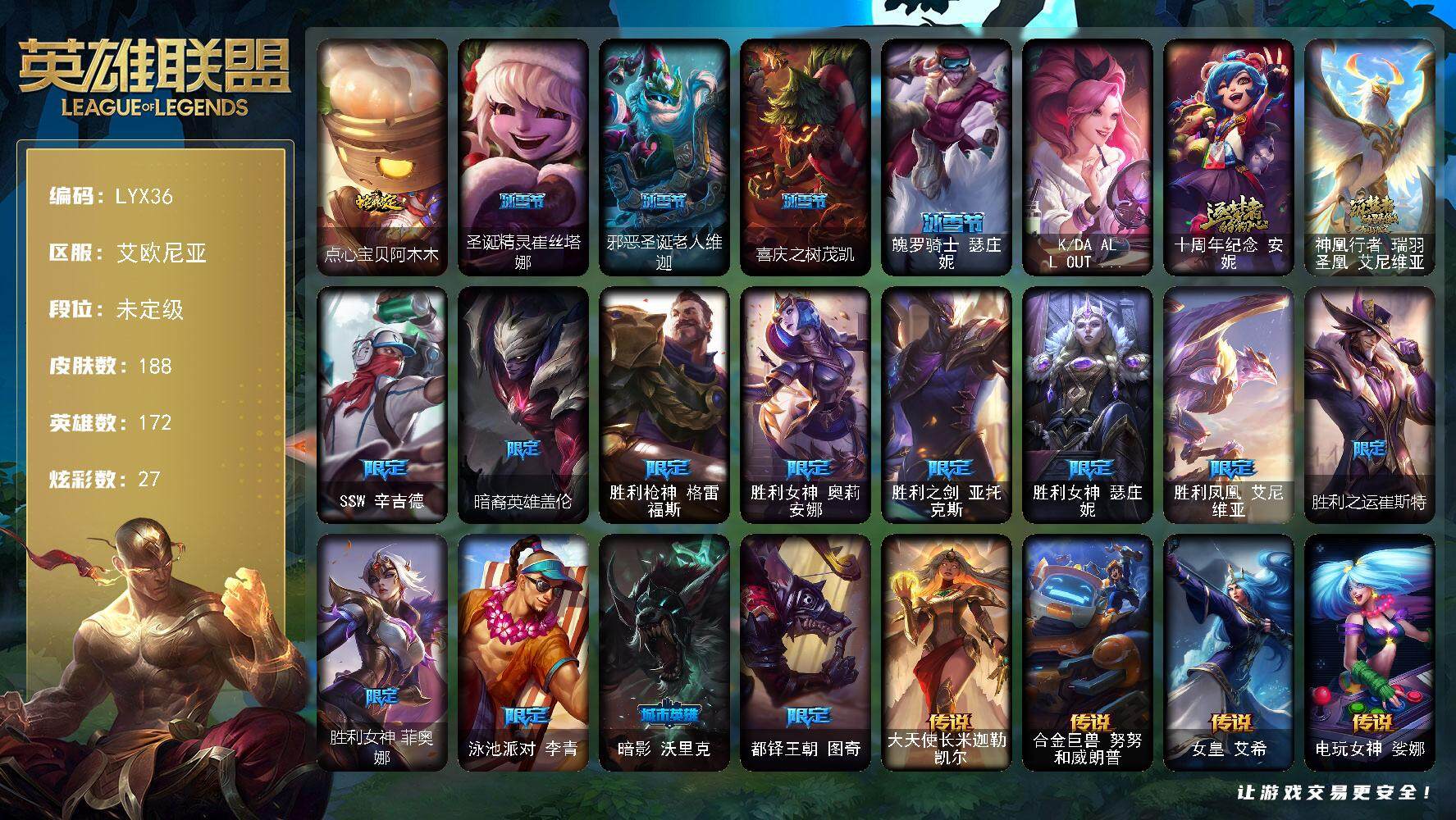 【特价出售/店主推荐】未定级段位-172英雄-188皮肤-27炫彩-3终极-2