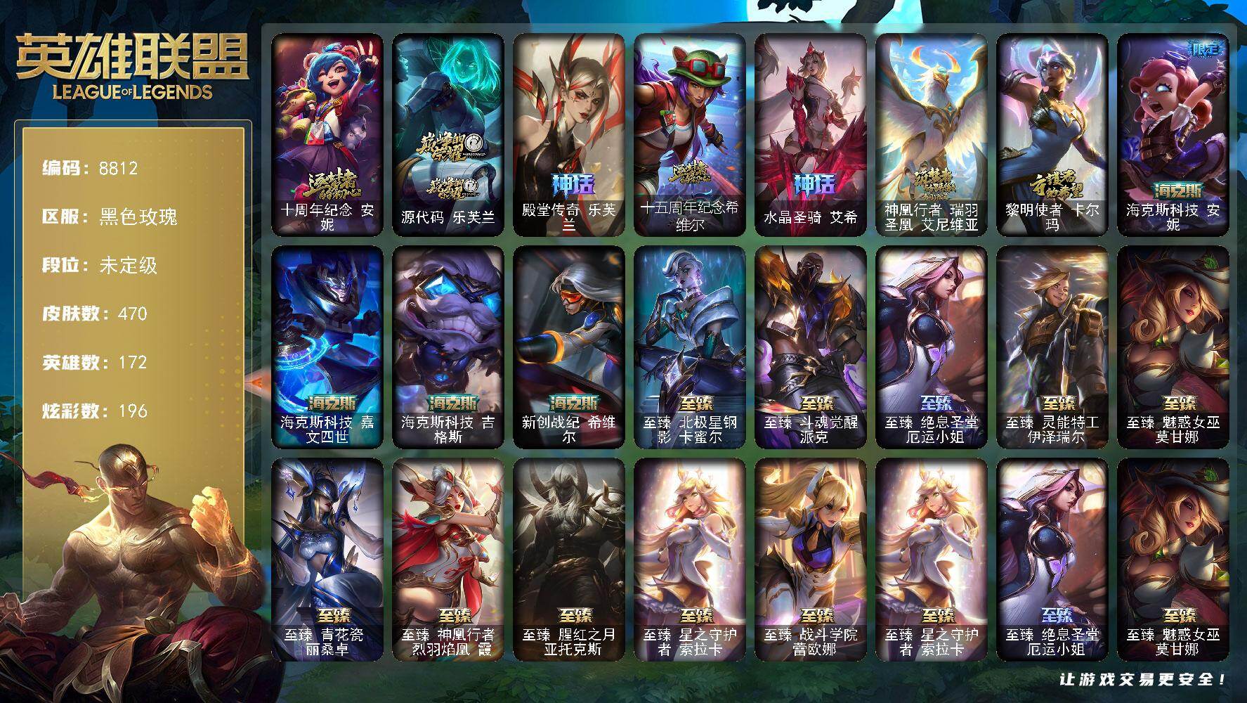 未定级段位-172英雄-470皮肤-196炫彩-1终极-22神话-62限定-41传说
