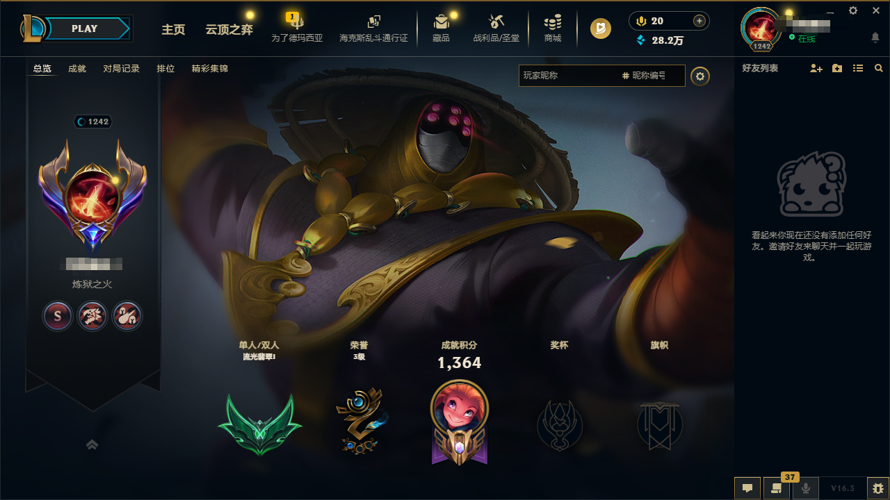 未定级段位-172英雄-292皮肤-49炫彩-0终极-3神话-35限定-25传说