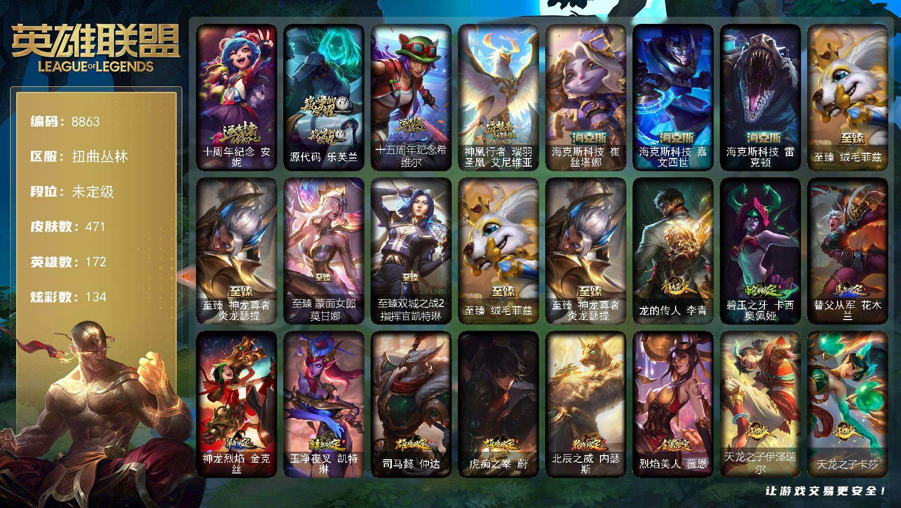 未定级段位-172英雄-471皮肤-134炫彩-1终极-11神话-77限定-49传说-109史诗