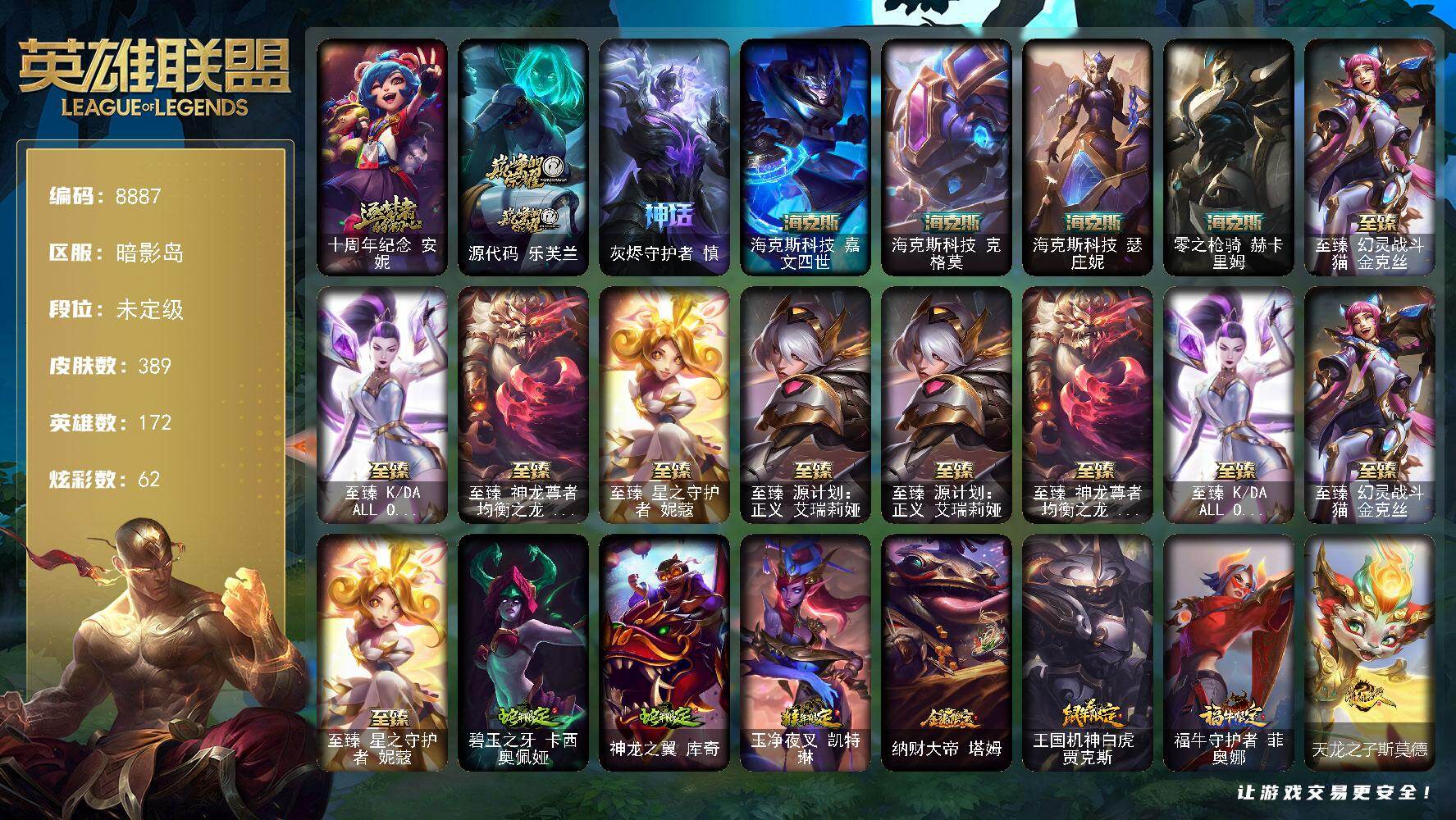 未定级段位-172英雄-389皮肤-62炫彩-2终极-12神话-54限定-51传说-81史诗