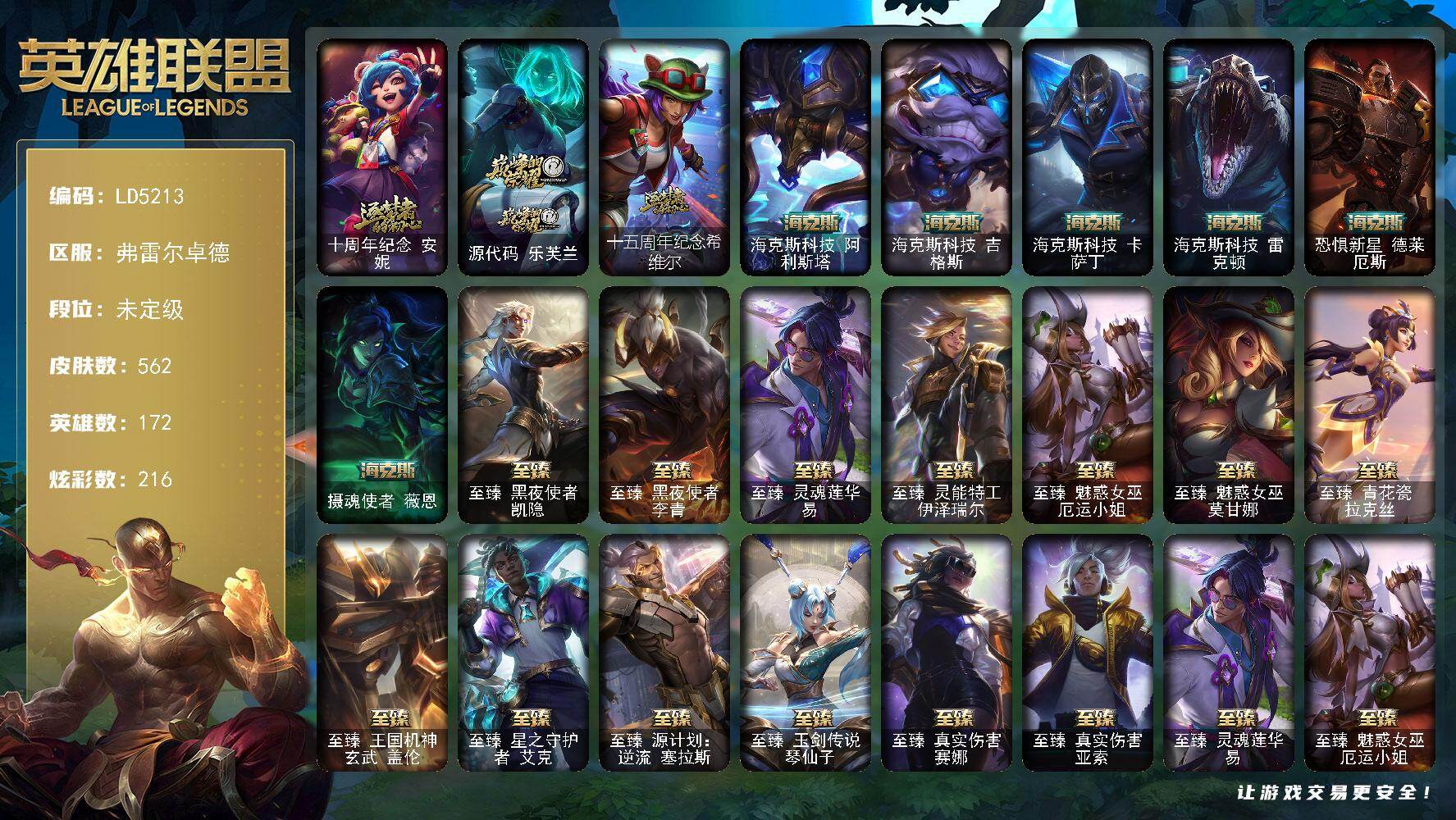 未定级段位-172英雄-562皮肤-216炫彩-3终极-24神话-89限定-72传说