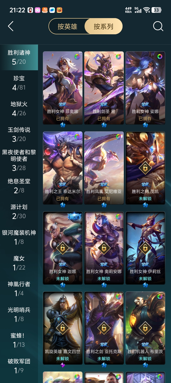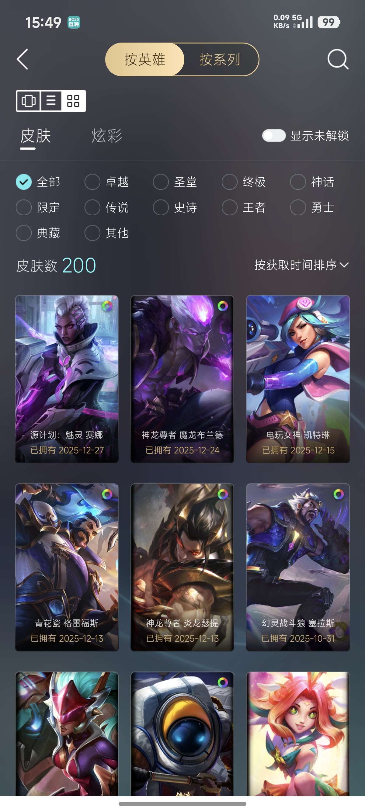 172英雄/465皮肤/6神话/79限定/5臻彩/87炫彩/32传说/123史诗