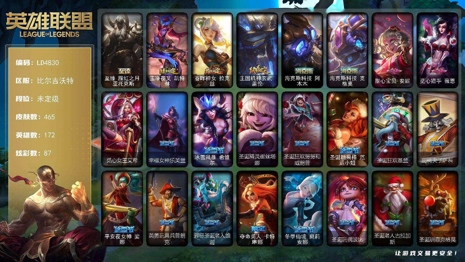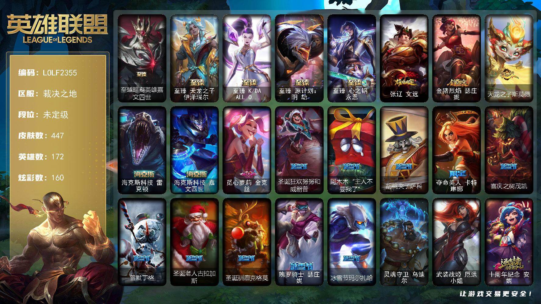 172英雄/447皮肤/2终极/13神话/52限定/12臻彩/160炫彩/29传说/96史诗/未定级/
