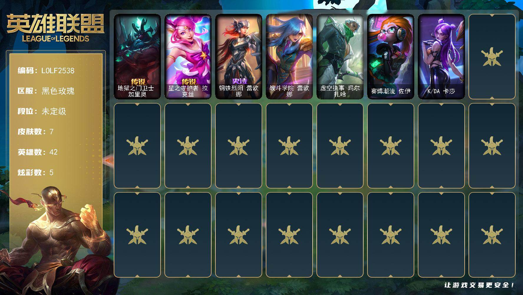 42英雄/7皮肤/5炫彩/2传说/1史诗/未定级/