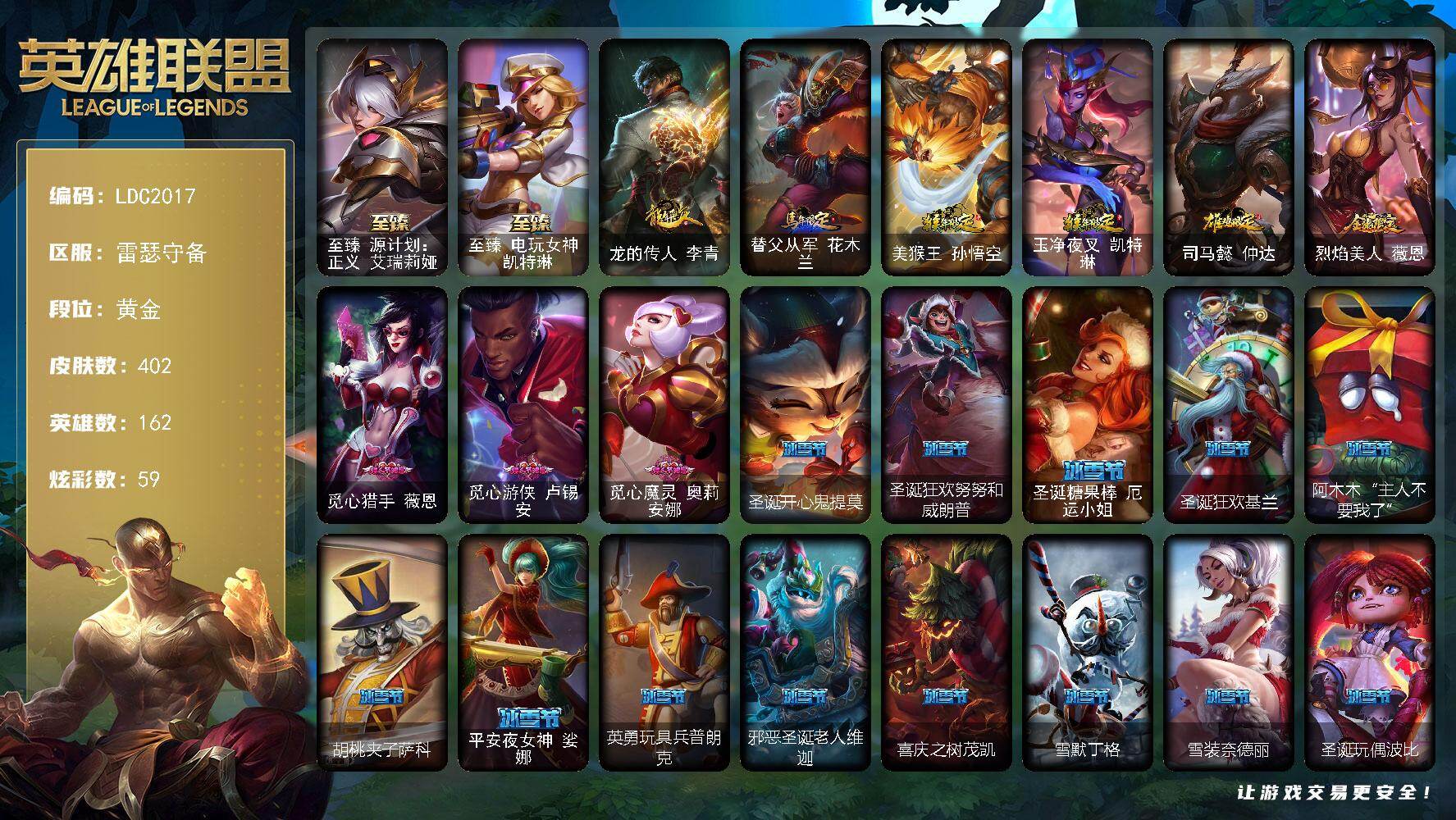 171英雄/635皮肤/3终极/51神话/91限定/22臻彩/680炫彩/64传说/113史诗/未定级账号等级:1299