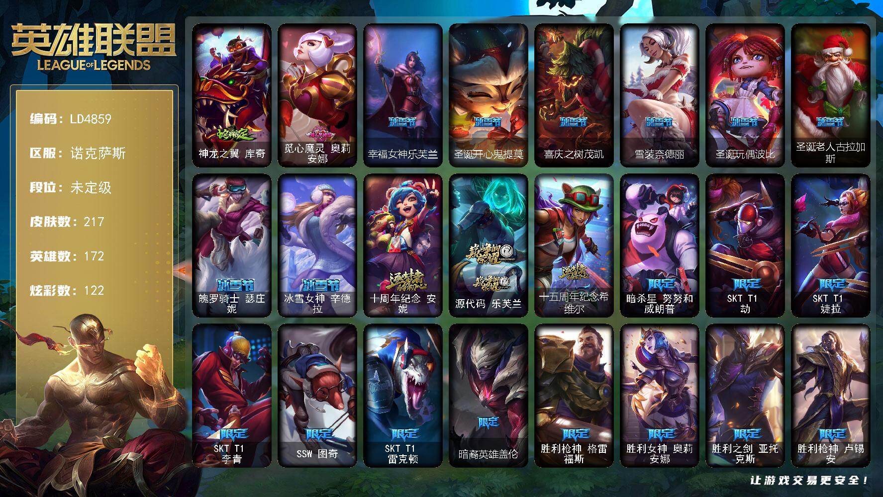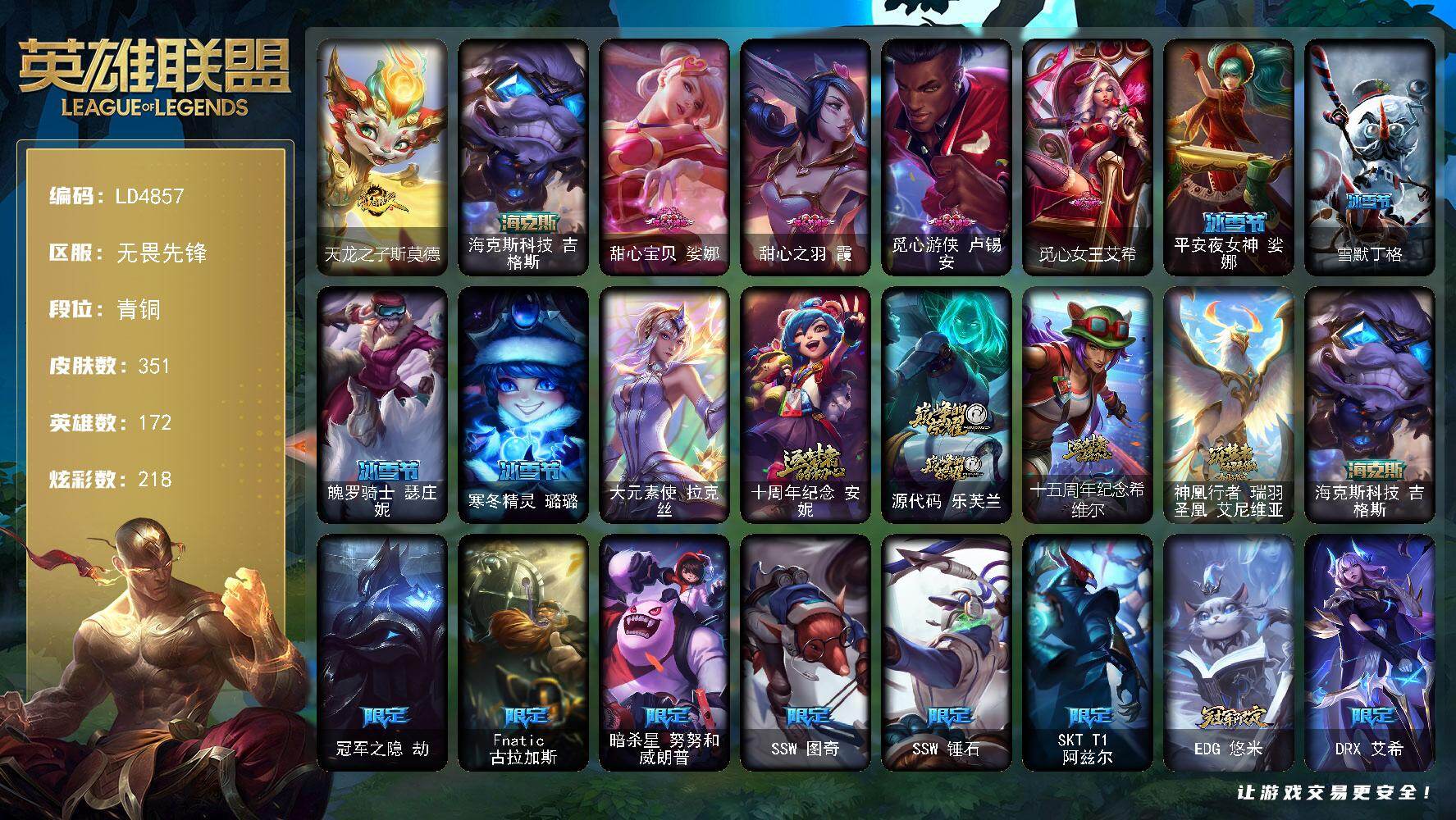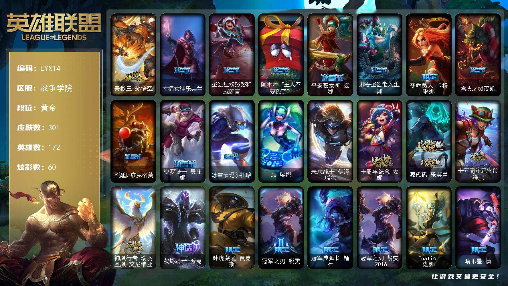【特价出售/店主推荐】黄金段位-172英雄-301皮肤-60炫彩-2终极-5神