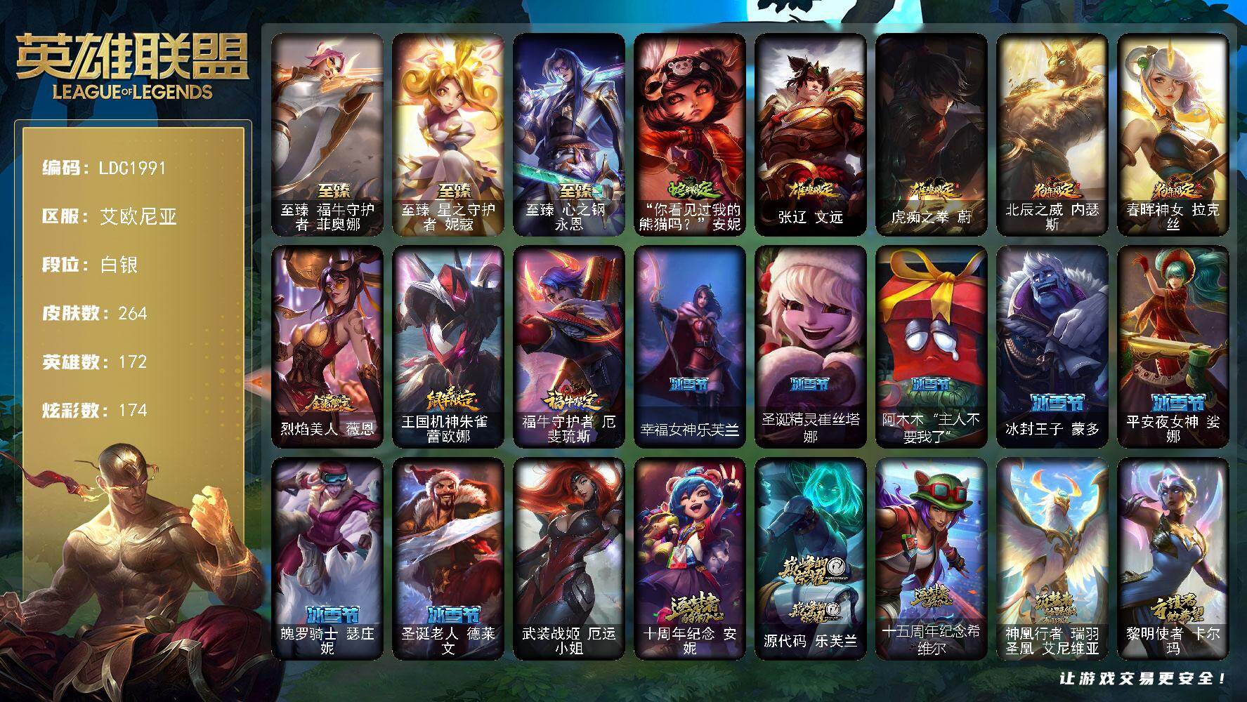 172英雄/264皮肤/1终极/8神话/37限定/11臻彩/174炫彩/35传说/53史诗/白银/