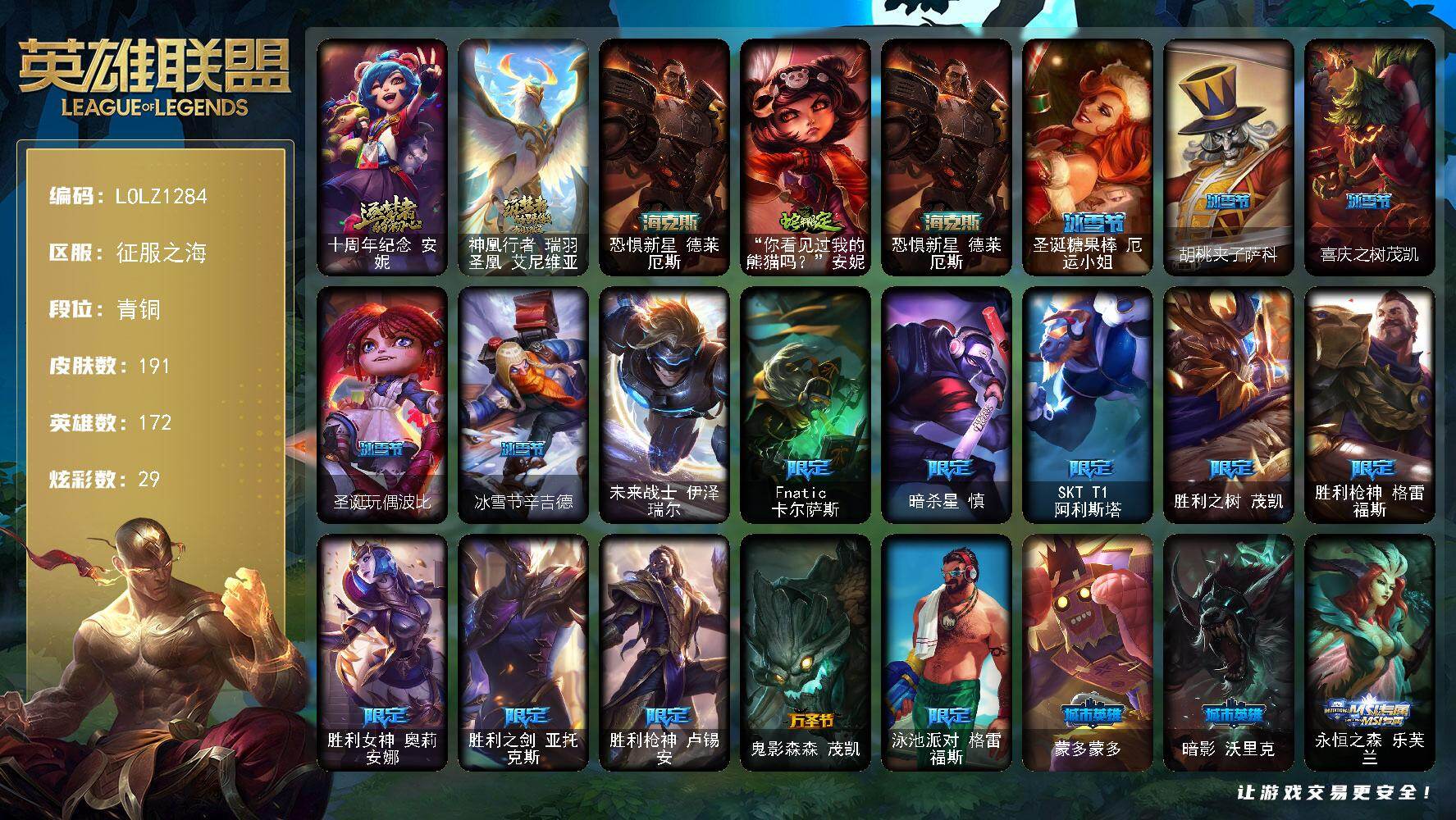 LOL十年老号七个大区可排位q皇冠起步价值可以自己上号看看值不值