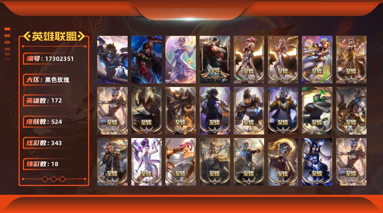 黑色玫瑰343级 426皮肤 171英雄-426皮肤-30炫彩-段位:未定