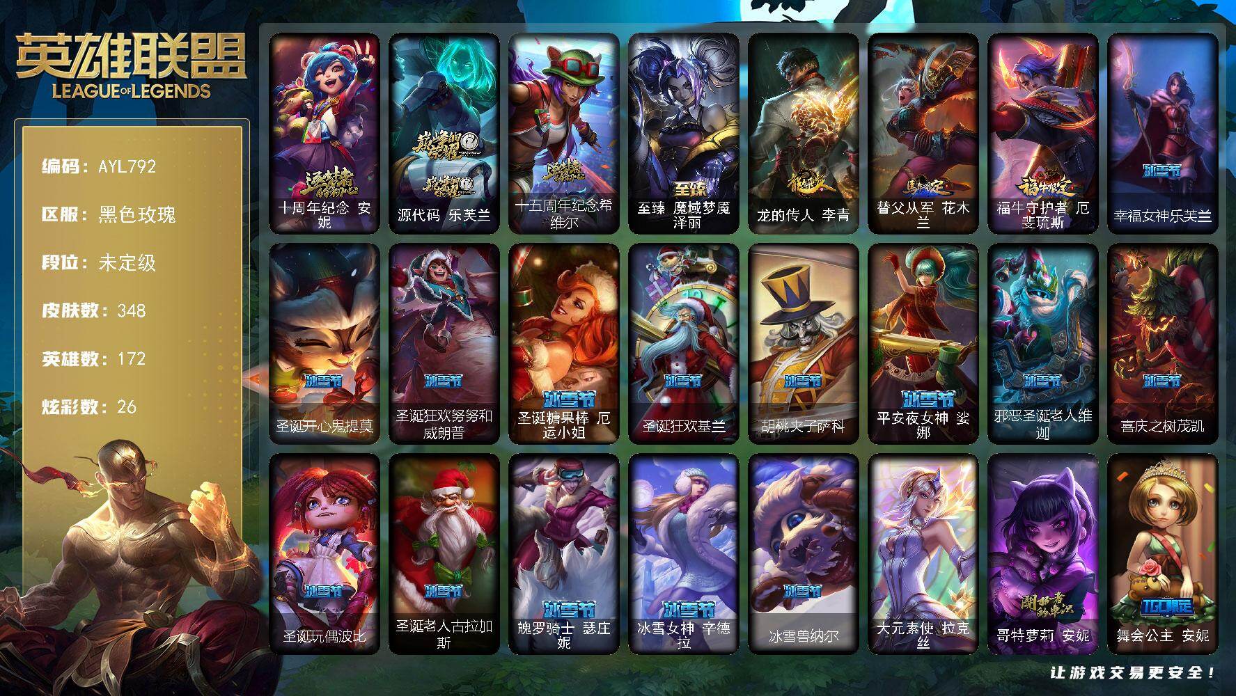 未定级段位-172英雄-348皮肤-26炫彩-1终极-4神话-56限定-30传