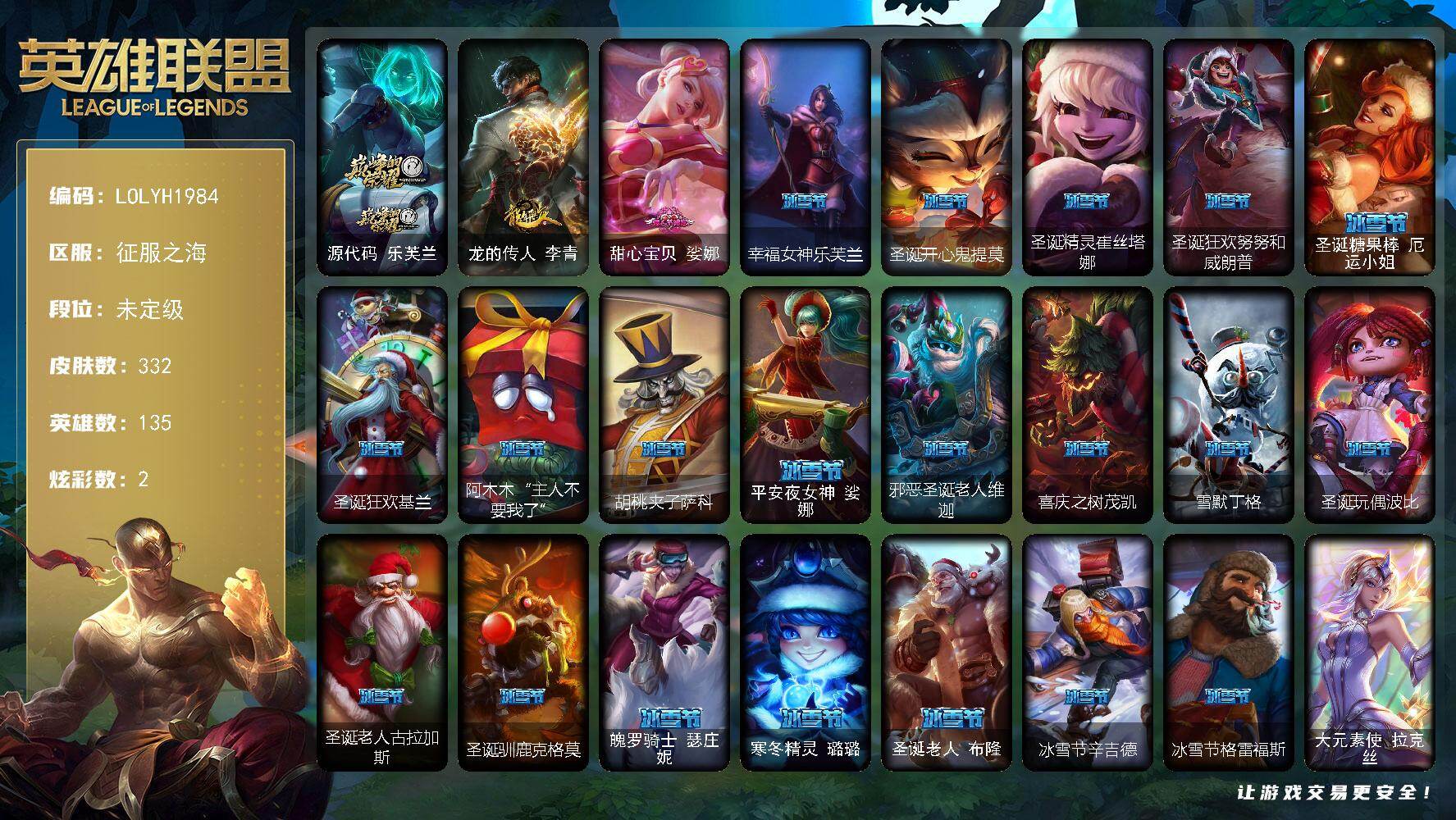 135英雄/332皮肤/2终极/1神话/55限定/1臻彩