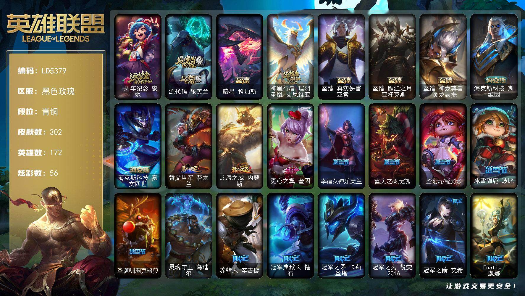 172英雄/576皮肤/2终极/36神话/92限定/17臻彩/2