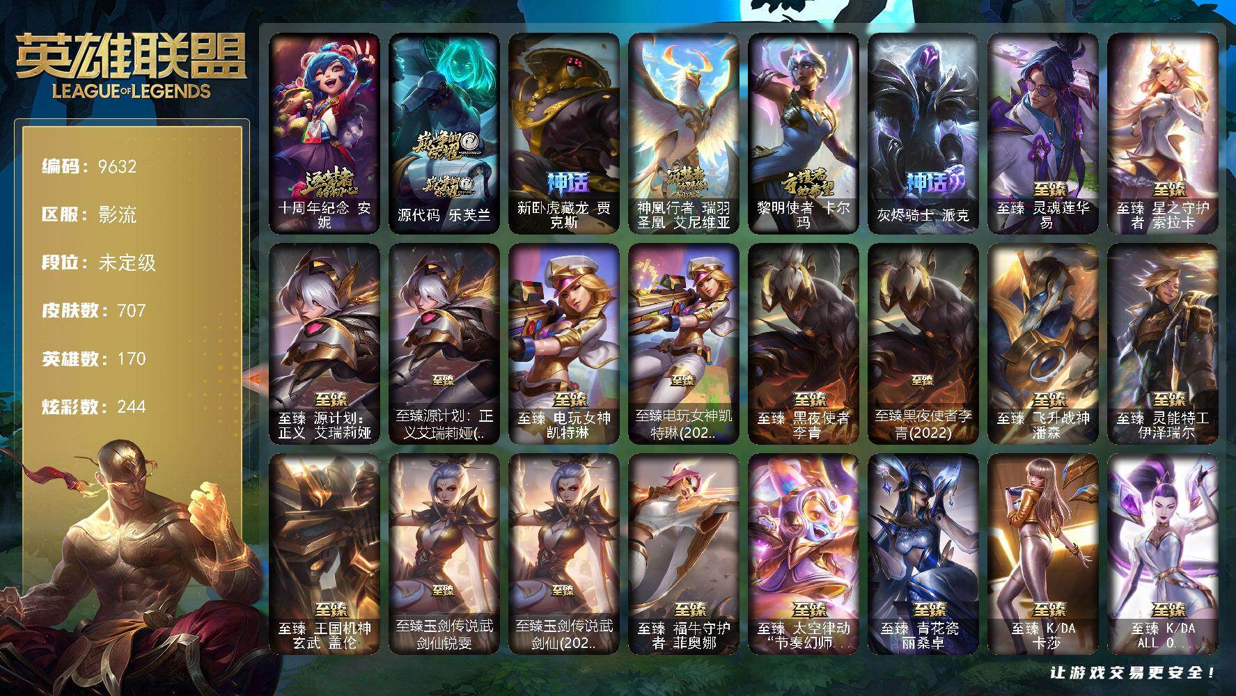 【特价出售/店主推荐】未定级段位-172英雄-234皮肤-24炫彩-1终极-