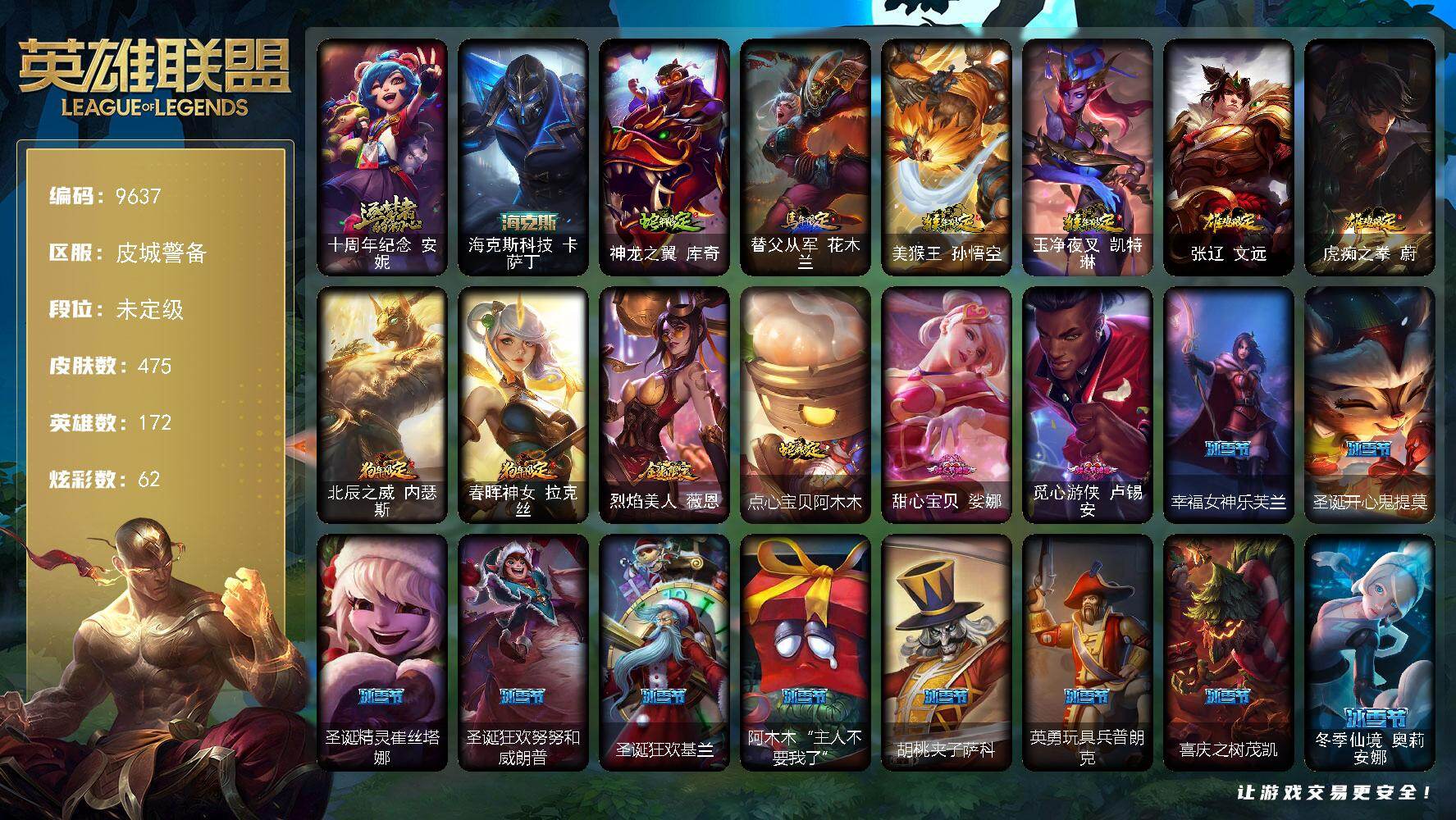 未定级段位-172英雄-475皮肤-62炫彩-1终极-2神话-85限定-41传说