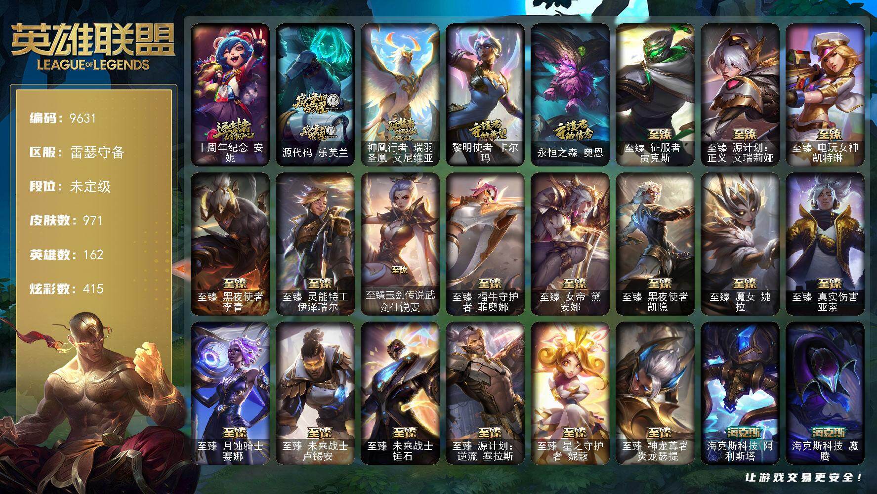 未定级段位-162英雄-971皮肤-415炫彩-5终极-28神话