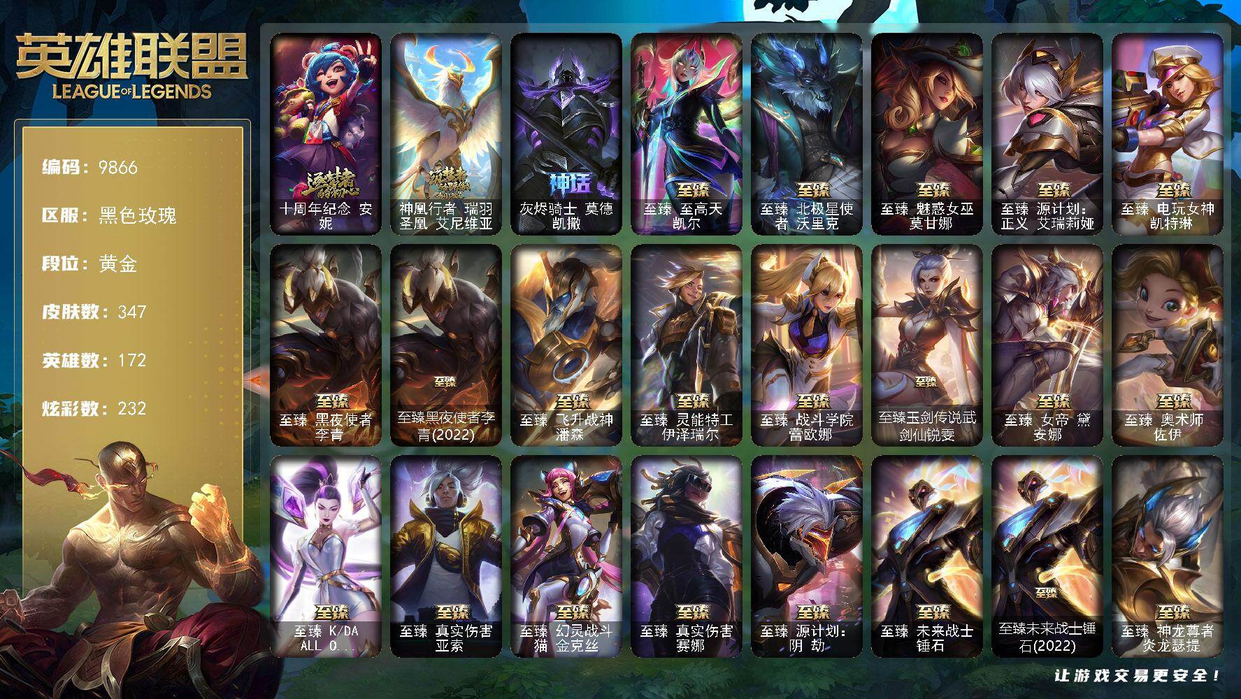 黄金段位-172英雄-347皮肤-232炫彩-0终极-32神话-46限定-34传说