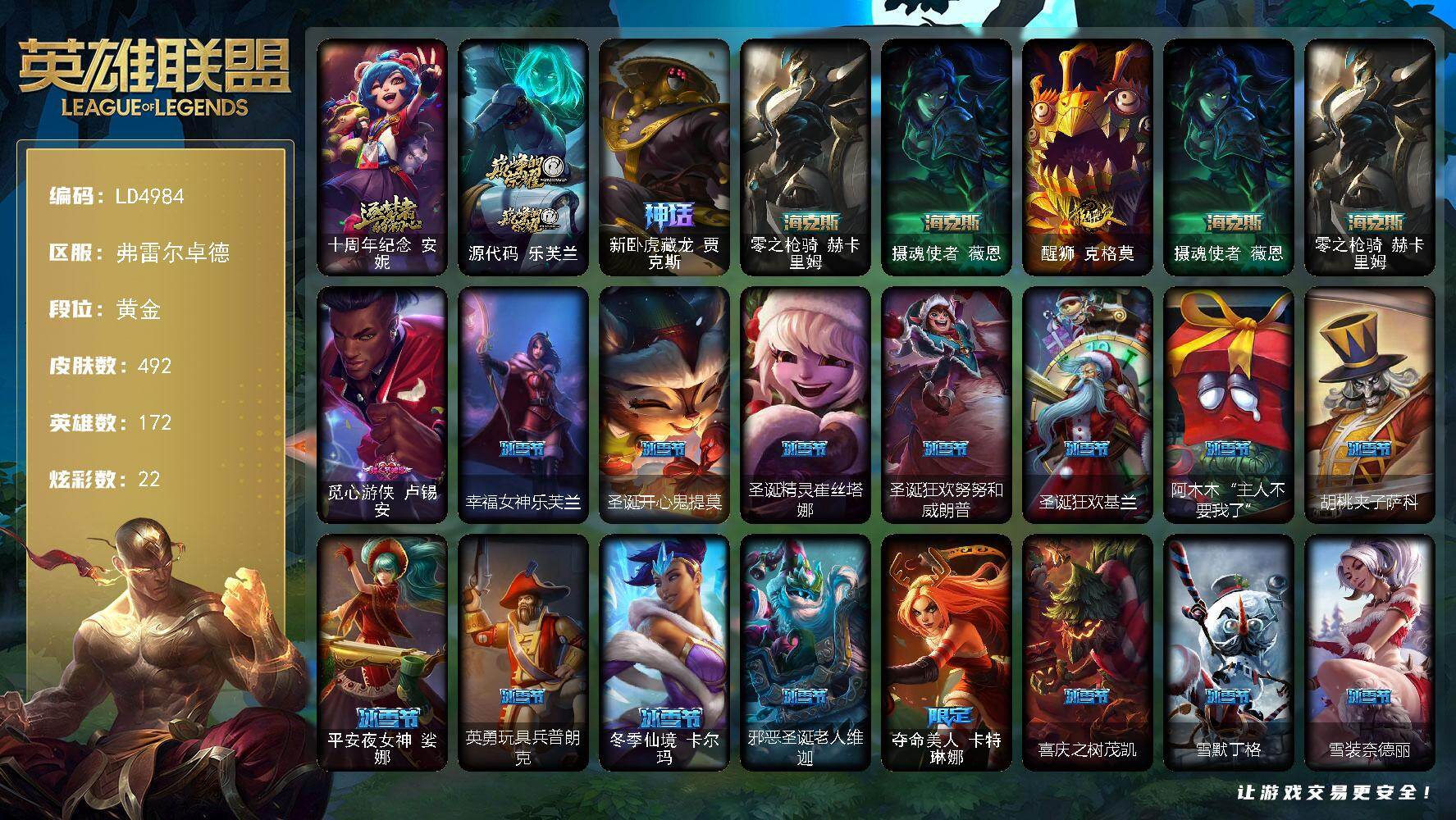 172英雄/492皮肤/3终极/5神话/90限定/5臻彩/22炫彩/49传说/133史诗/黄金/十周年纪念安妮/