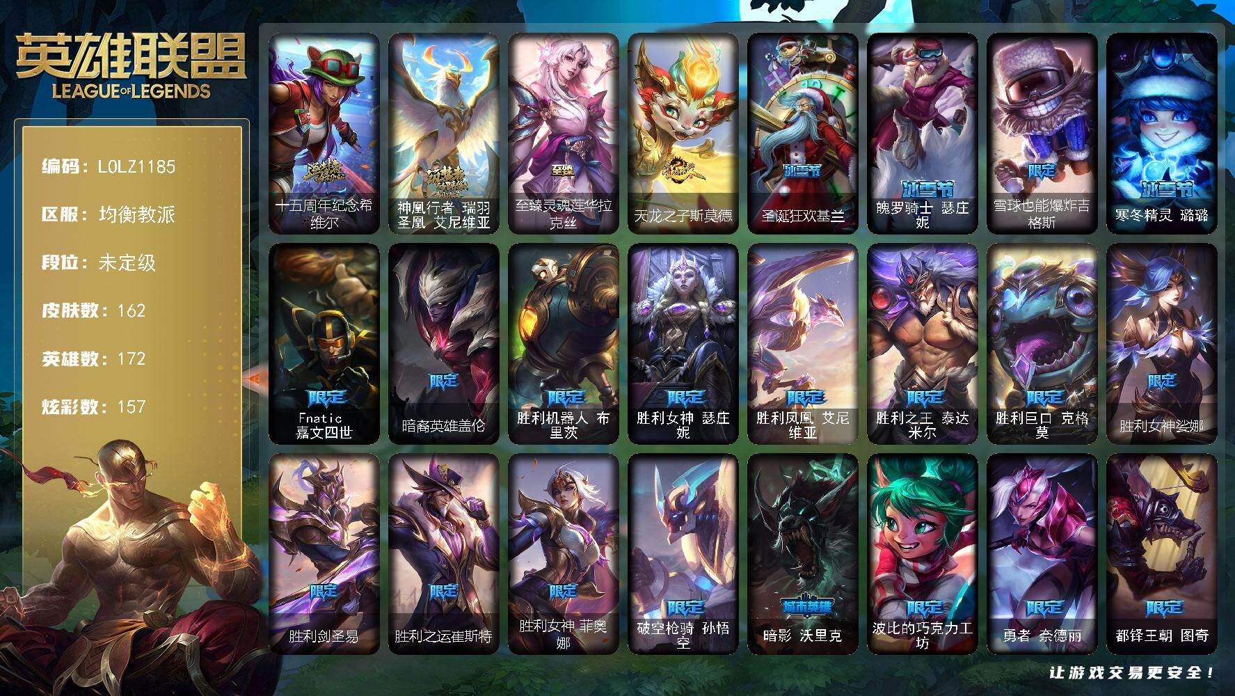 【特价出售/店主推荐】未定级段位-172英雄-405皮肤-287炫彩-1终极