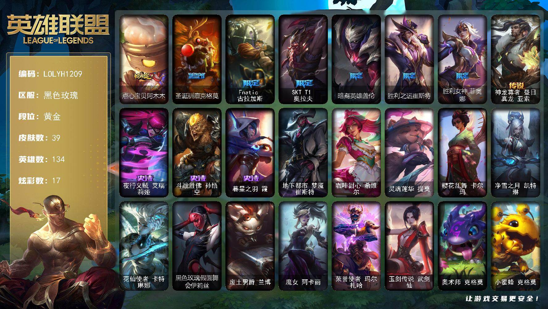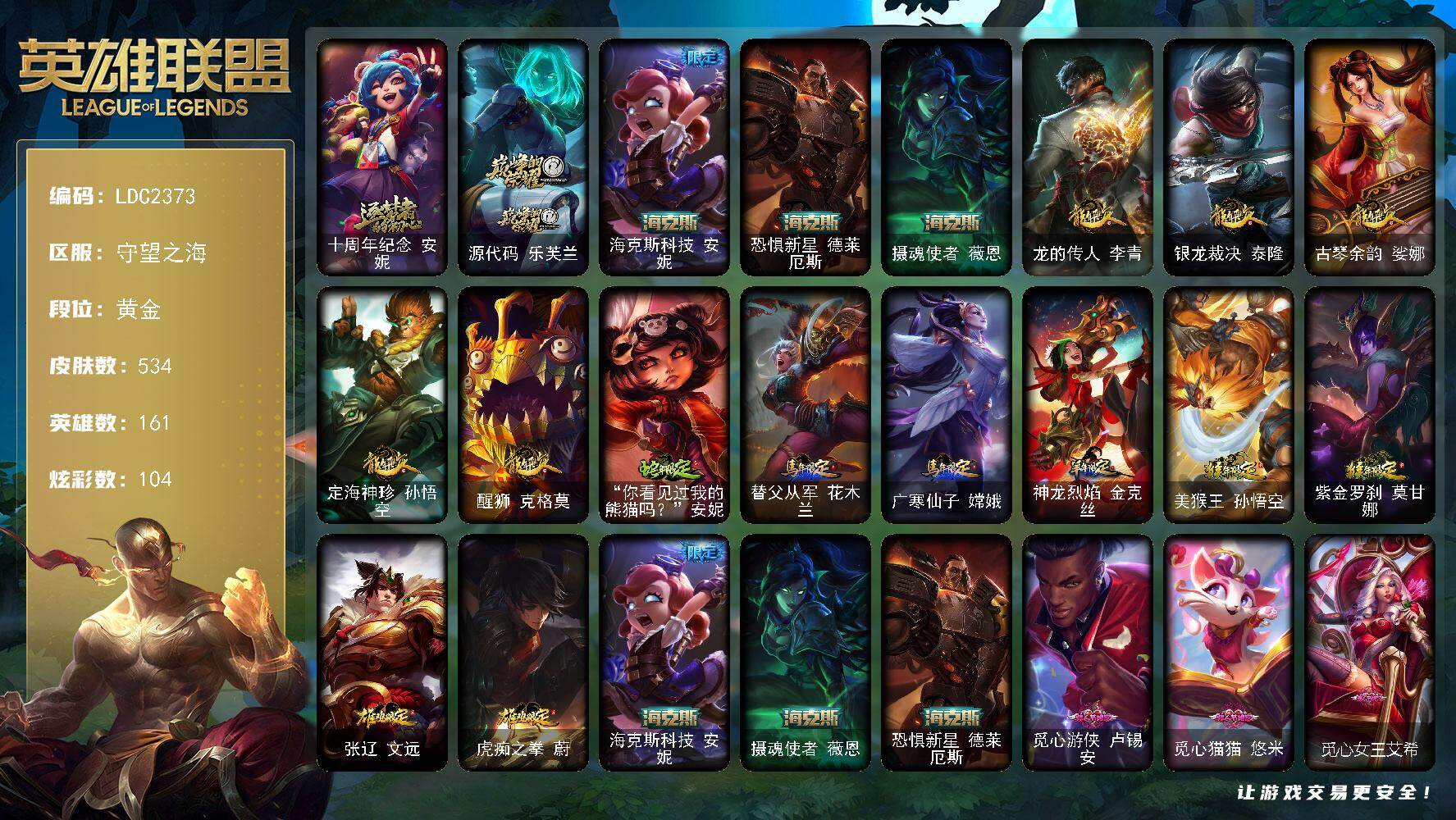 161英雄/534皮肤/3终极/5神话/112限定/5臻彩/104炫彩/56传说/152史诗/黄金/十周年纪念安妮/