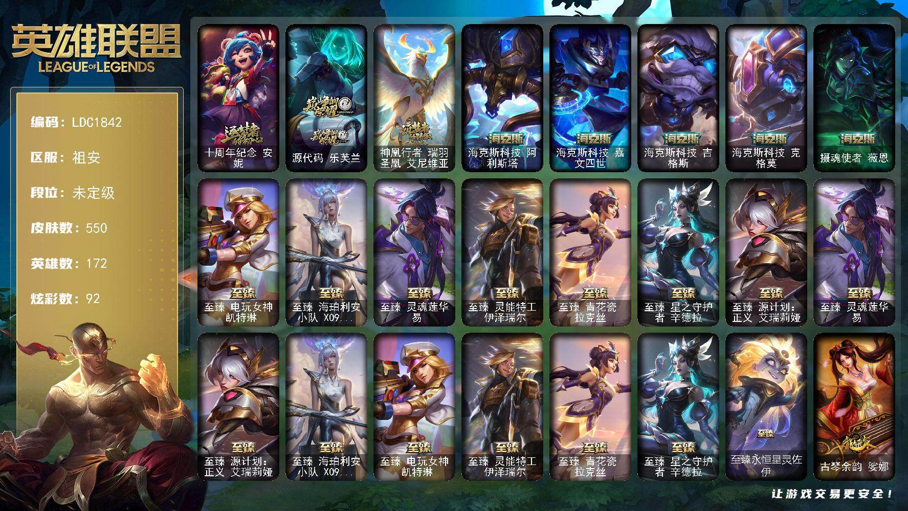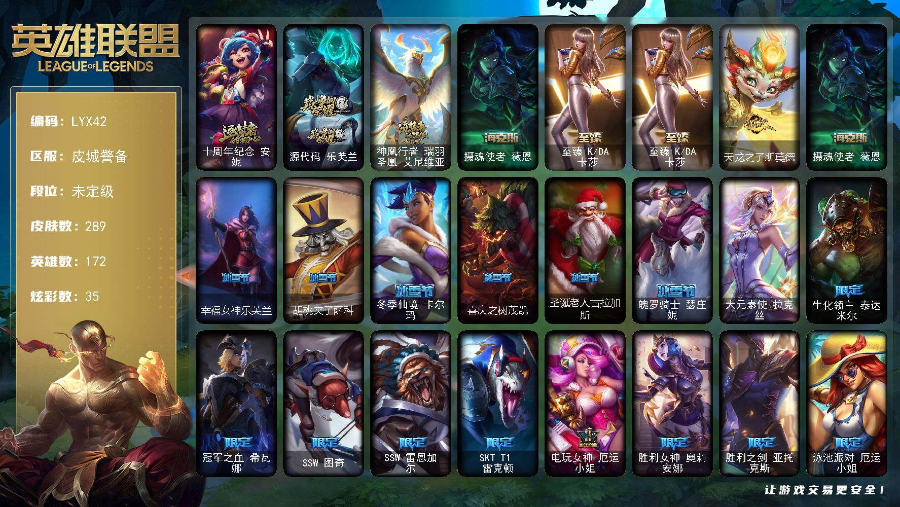 【特价出售/店主推荐】未定级段位-172英雄-289皮肤-35炫彩-1终极-5