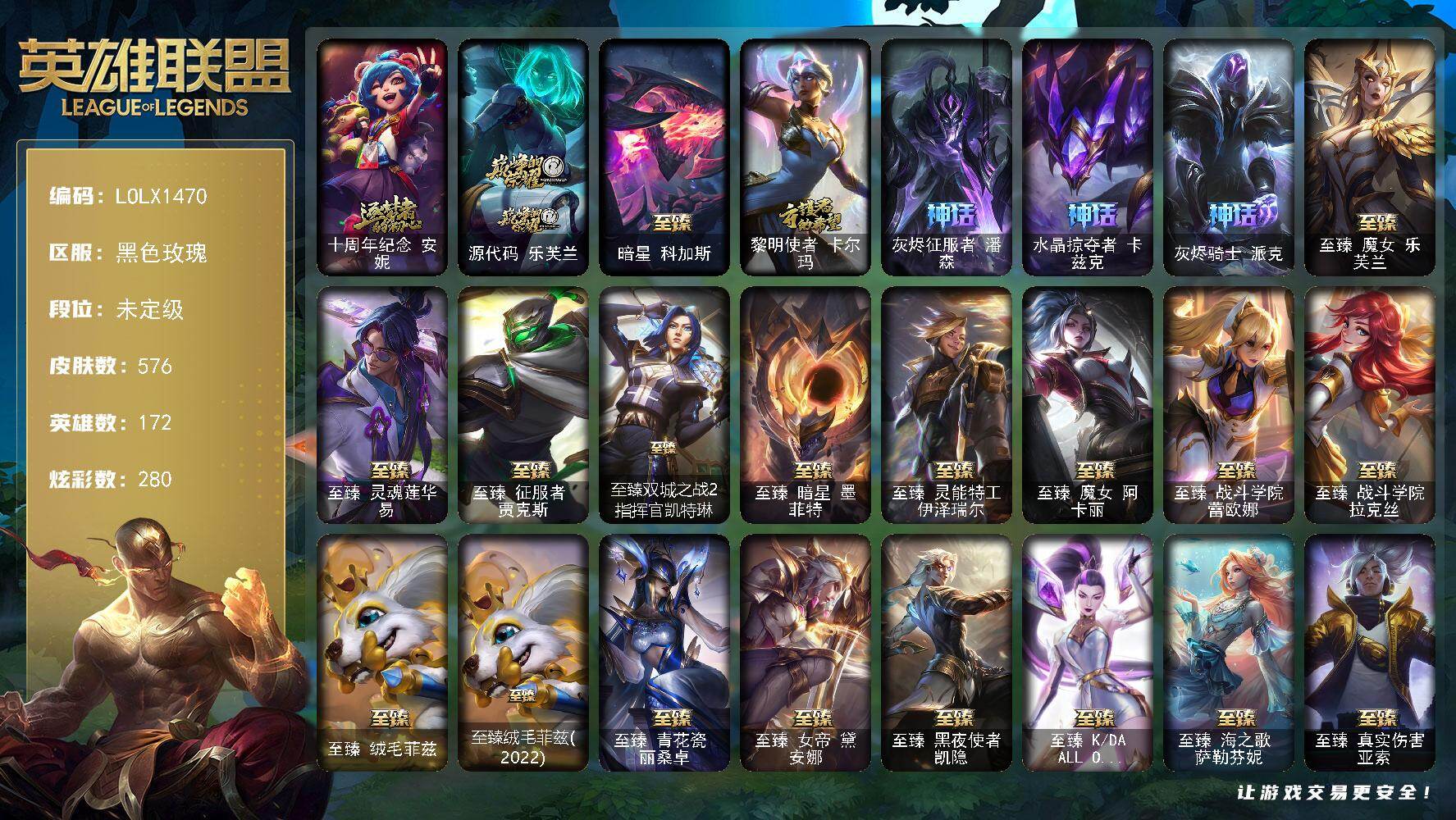 未定级段位-172英雄-576皮肤-280炫彩-2终极-36神话-92限定-63传说