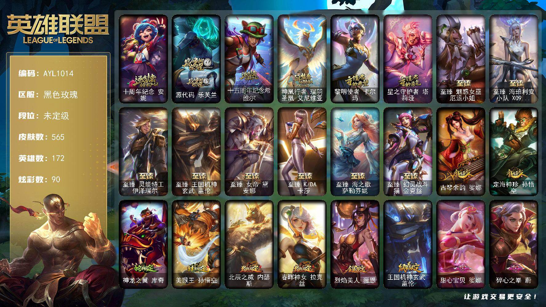 未定级段位-172英雄-565皮肤-90炫彩-4终极-14神话-93限定-54