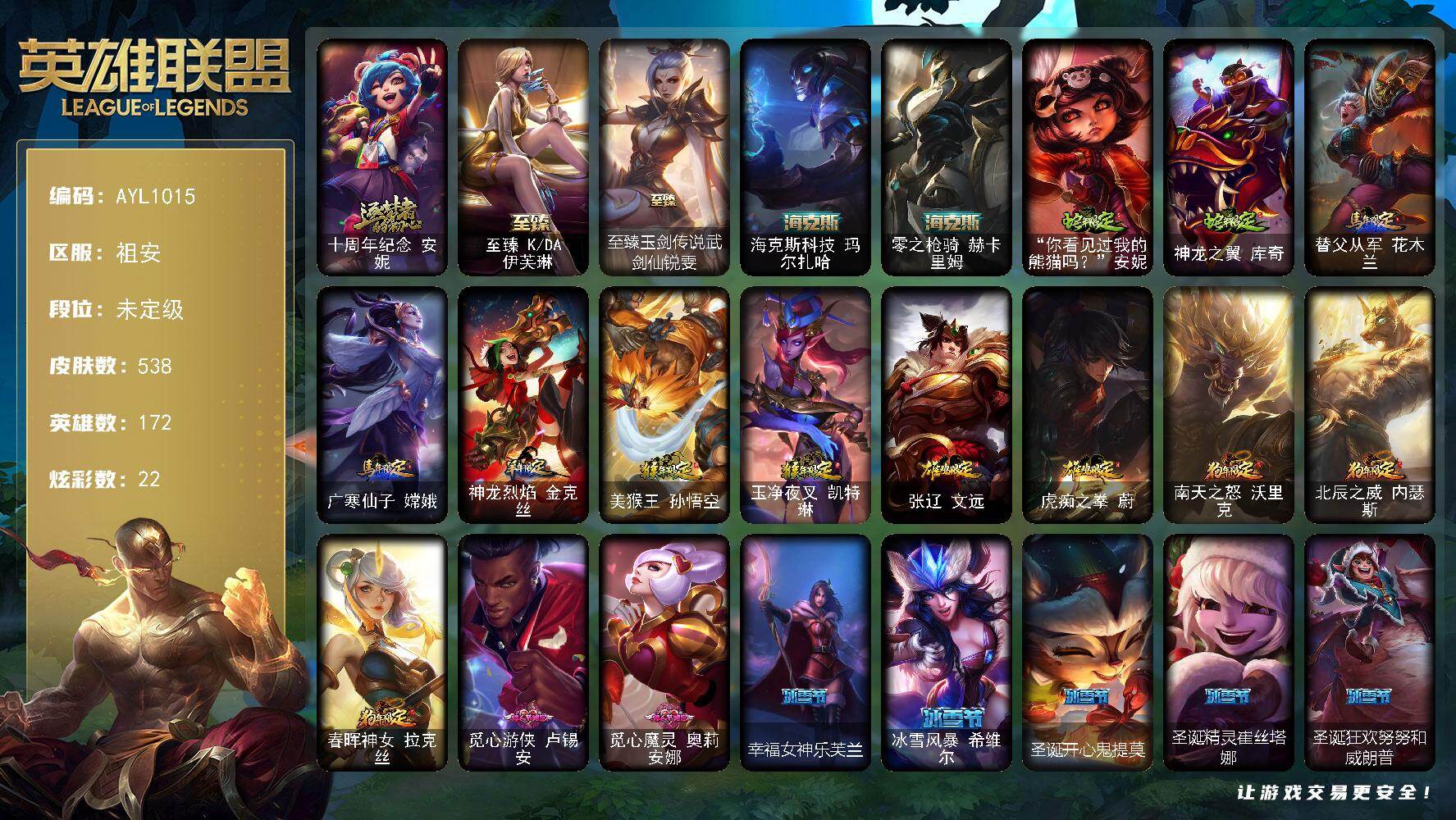 未定级段位-172英雄-538皮肤-22炫彩-4终极-5神话-92限定-65传