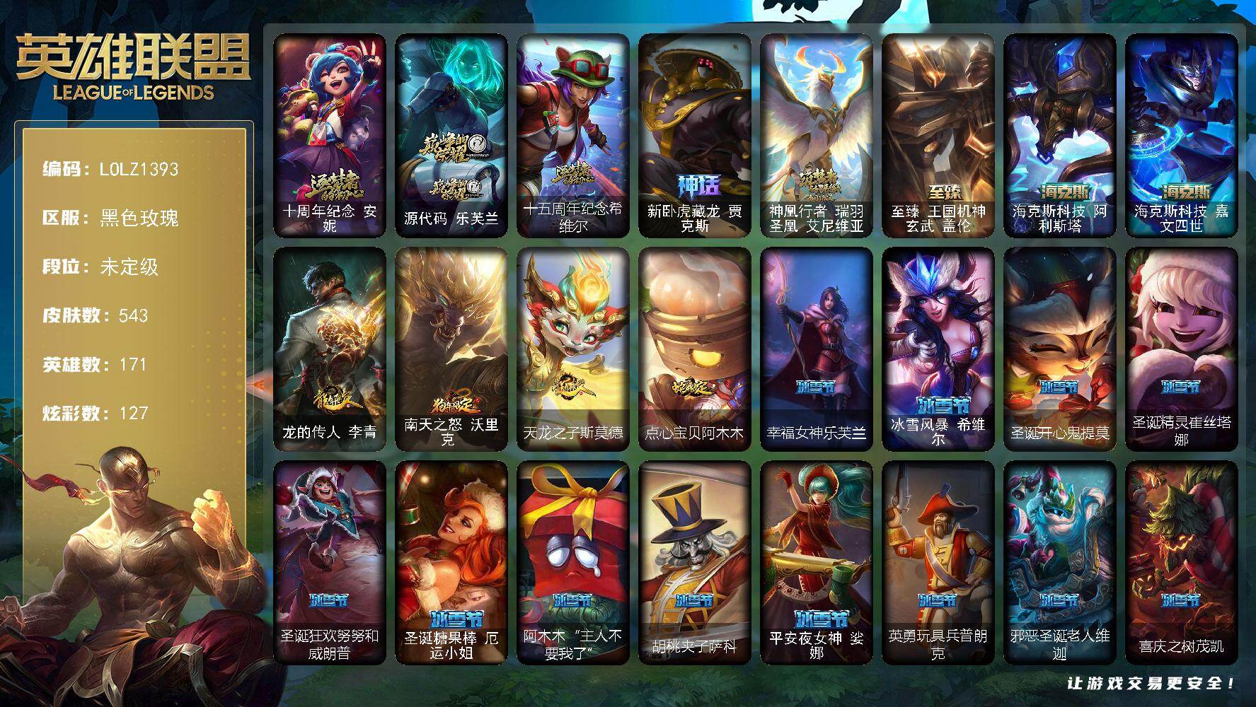 172英雄/601皮肤/2终极/47神话/76限定/20臻彩/45