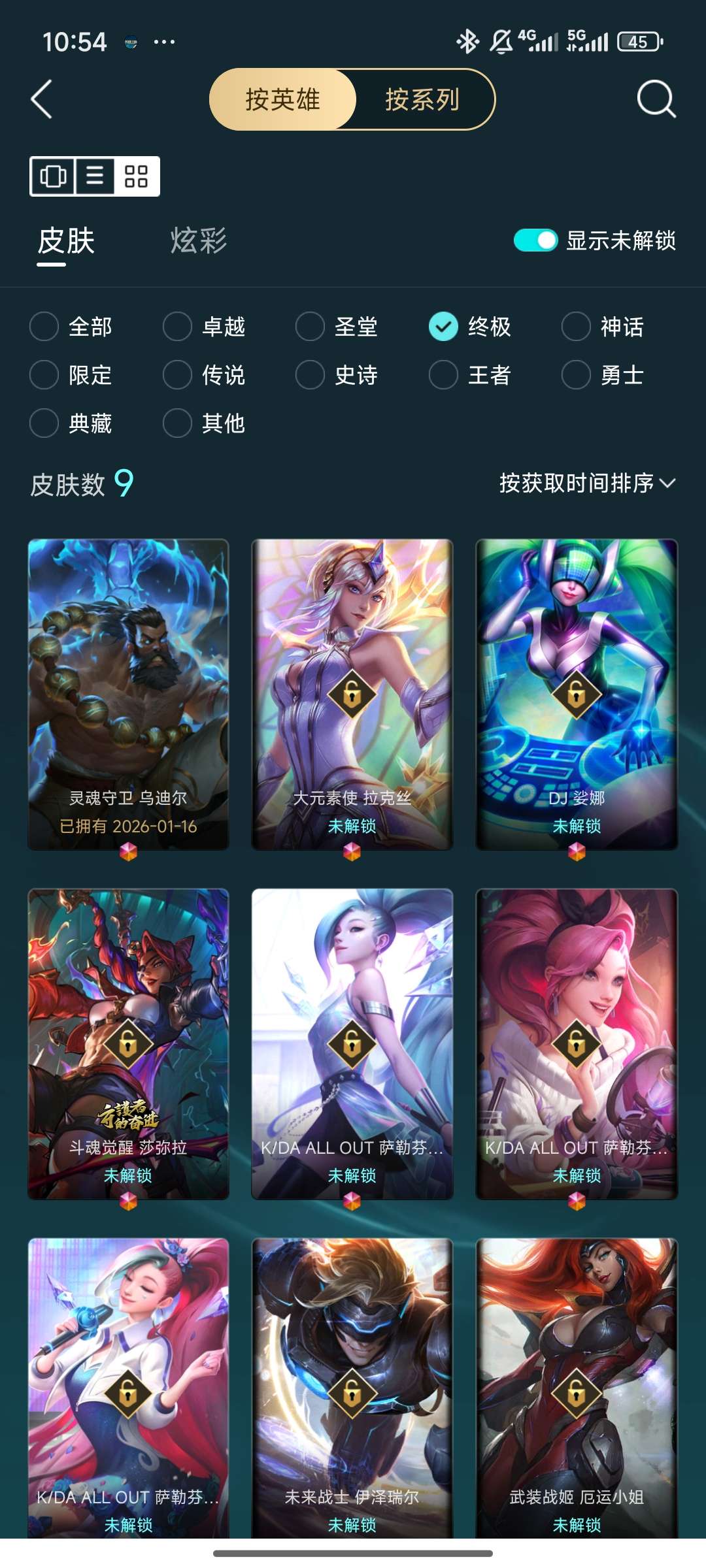 172英雄/505皮肤/1终极/10神话/93限定/12臻彩/263炫彩/55传说/123史诗