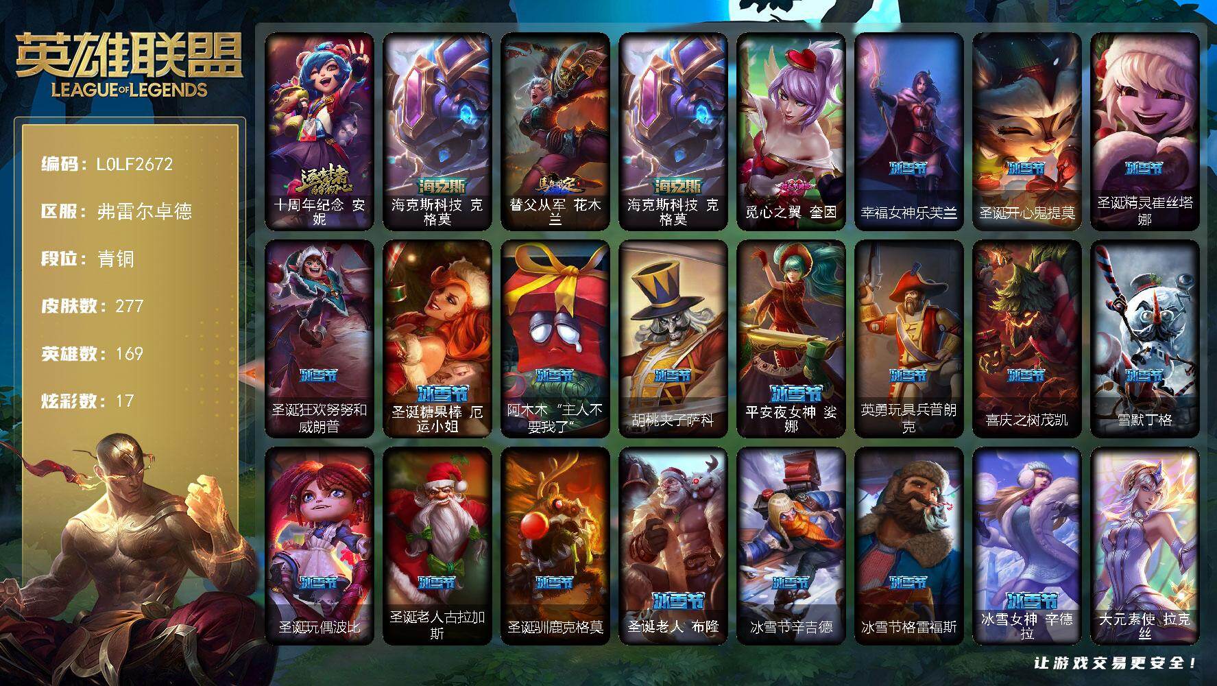 169英雄/277皮肤/2终极/2神话/66限定/3臻彩/17炫彩/33传说/58史诗