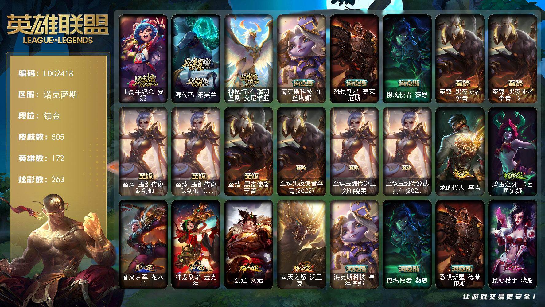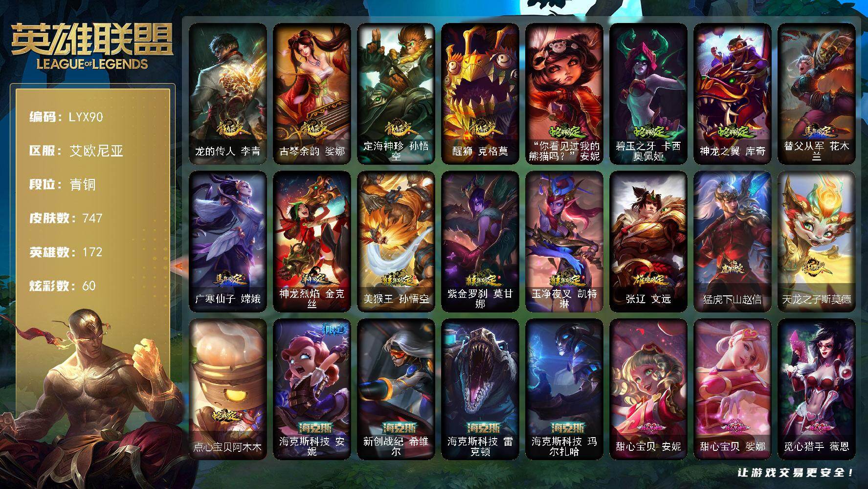 【特价出售/店主推荐】青铜段位-172英雄-747皮肤-60炫彩-4终极-7神