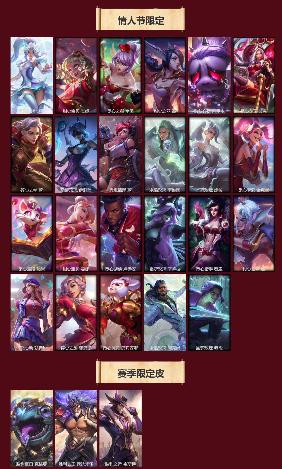 未定级段位-171英雄-487皮肤-177炫彩-2终极-13神话-101限定-40传
