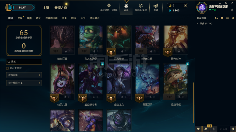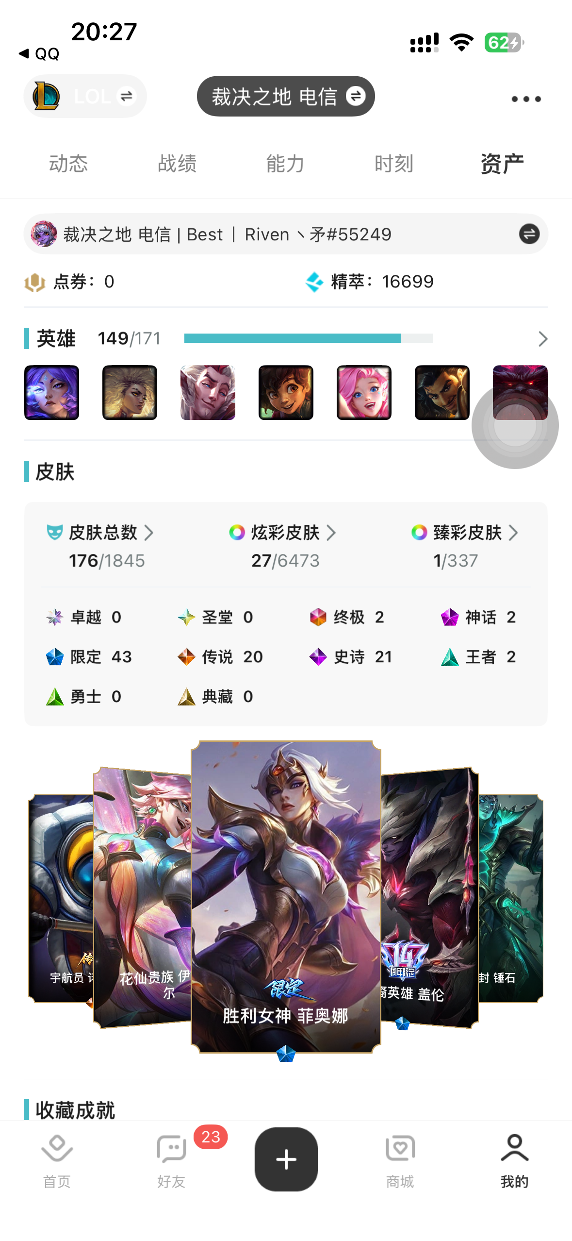 英雄联盟【端游】德玛西亚自己的号 藏品里英雄和皮肤很多