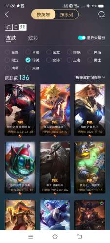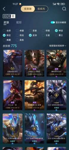 英雄联盟【端游】单双大师 320皮肤 1终极10神话57限定35传说68史诗