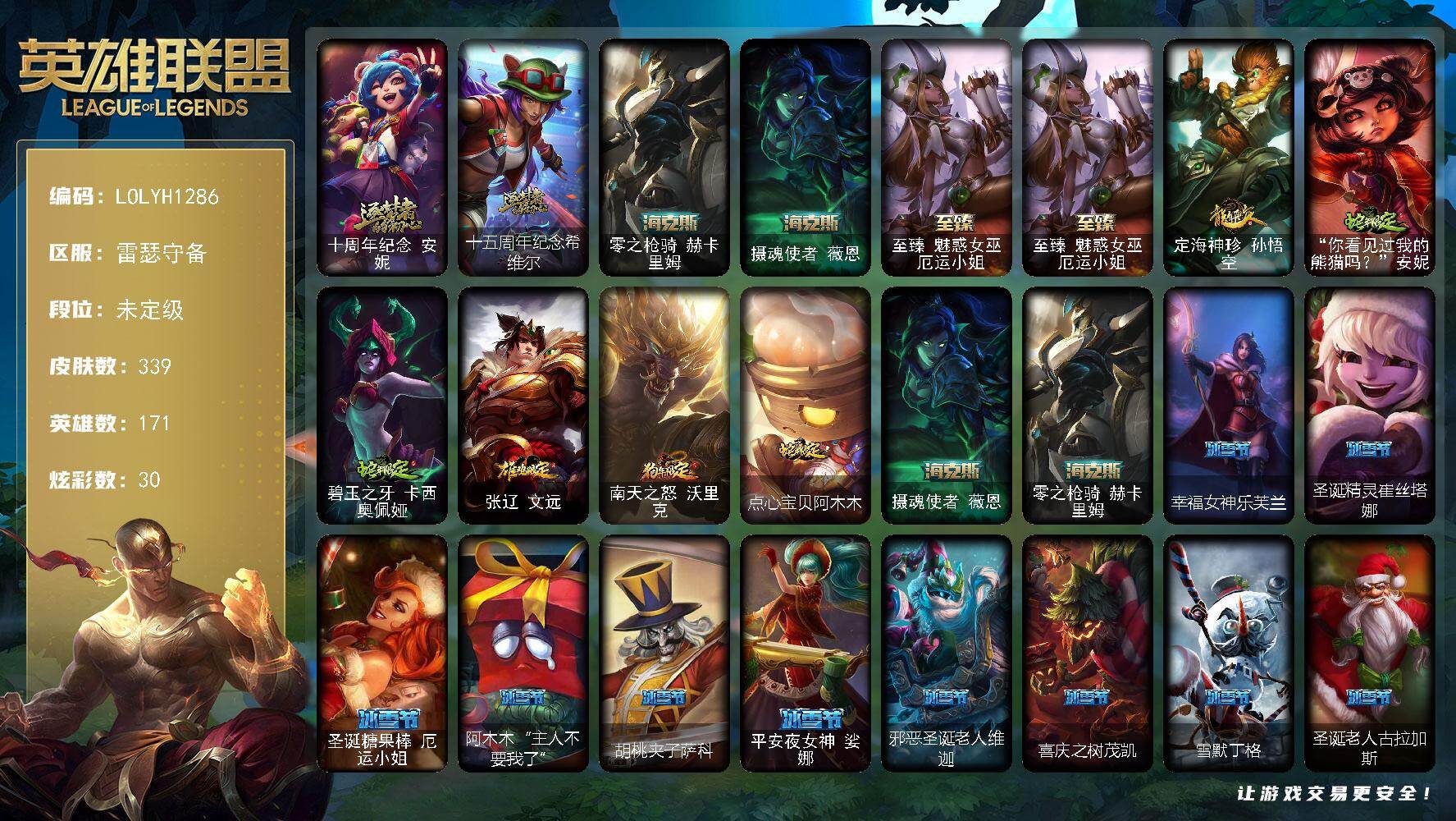 171英雄/339皮肤/5神话/44限定/2臻彩/30炫彩/22传说/85史诗/未定级/十周年纪念安妮/