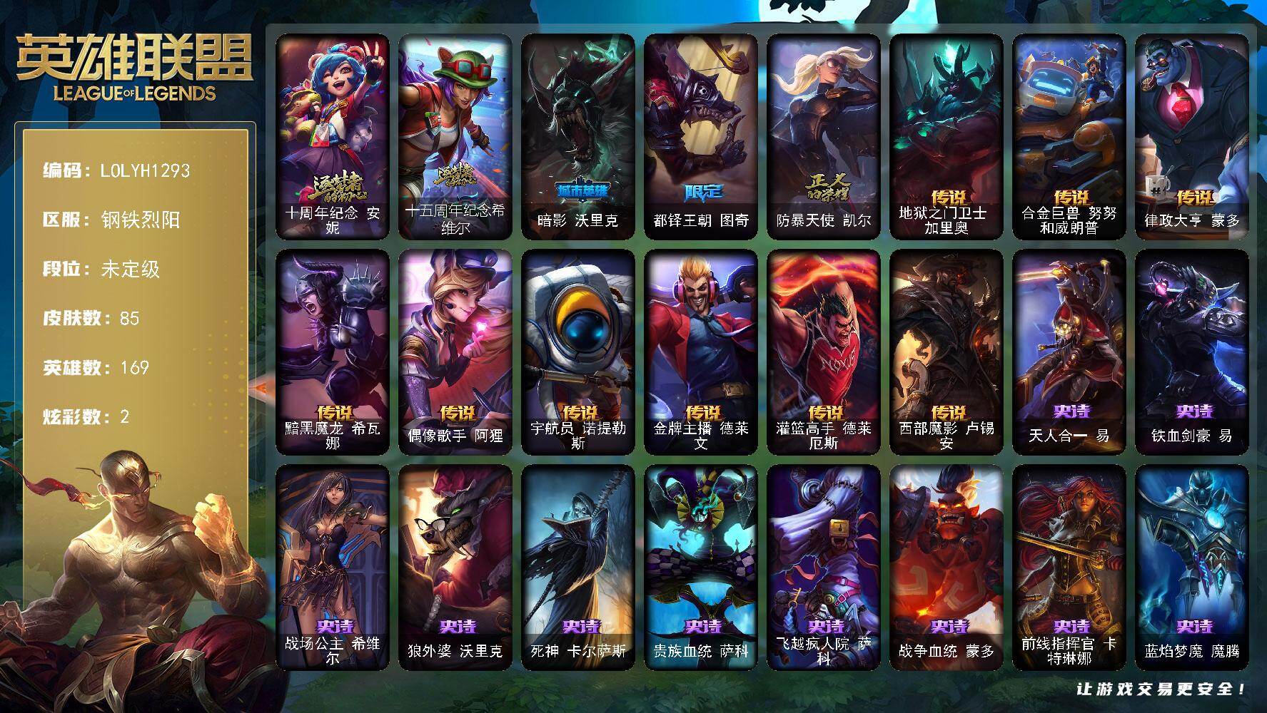 169英雄/85皮肤/2神话/3限定/2炫彩/9传说/20史诗/未定级