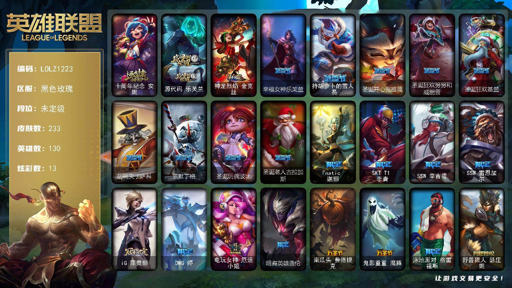 130英雄/233皮肤/2神话/26限定/3臻彩/13炫彩/19传说/64史诗/未定级