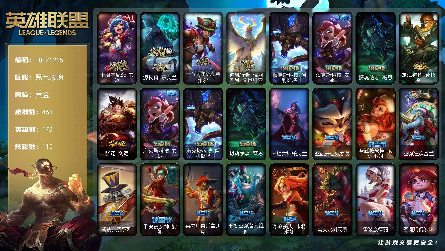 172英雄/463皮肤/7神话/61限定/4臻彩/113炫彩/32传说/118史诗