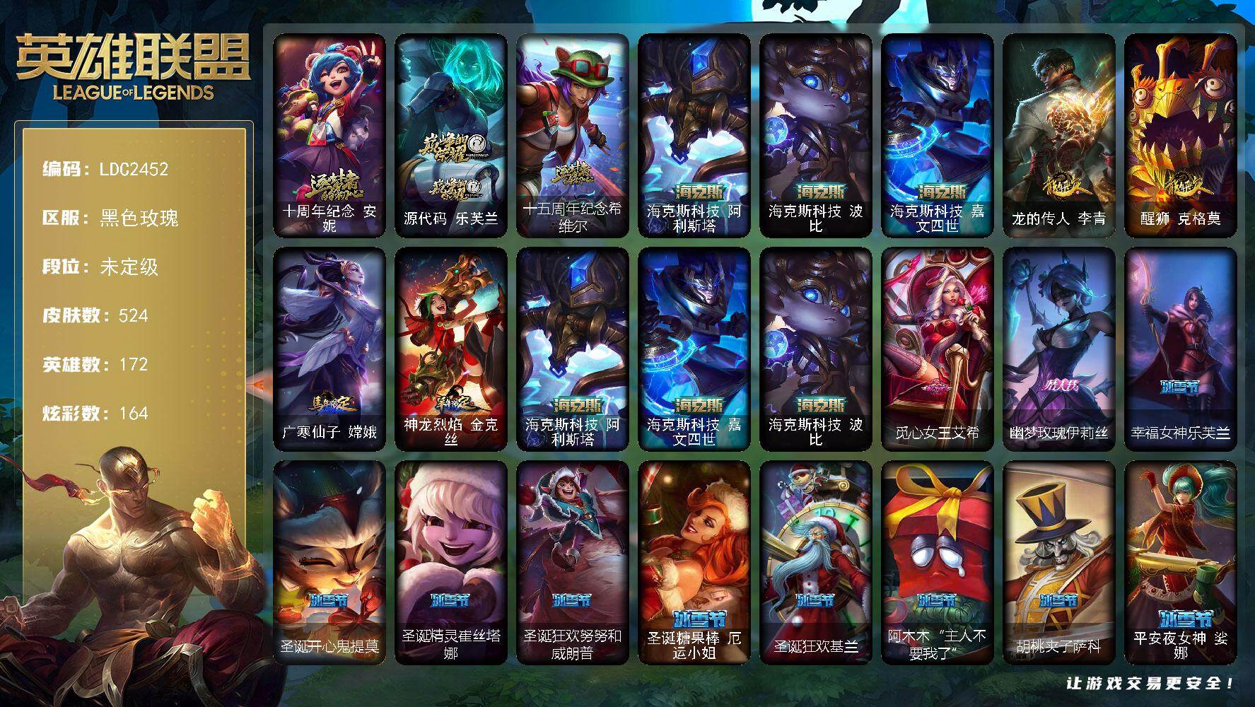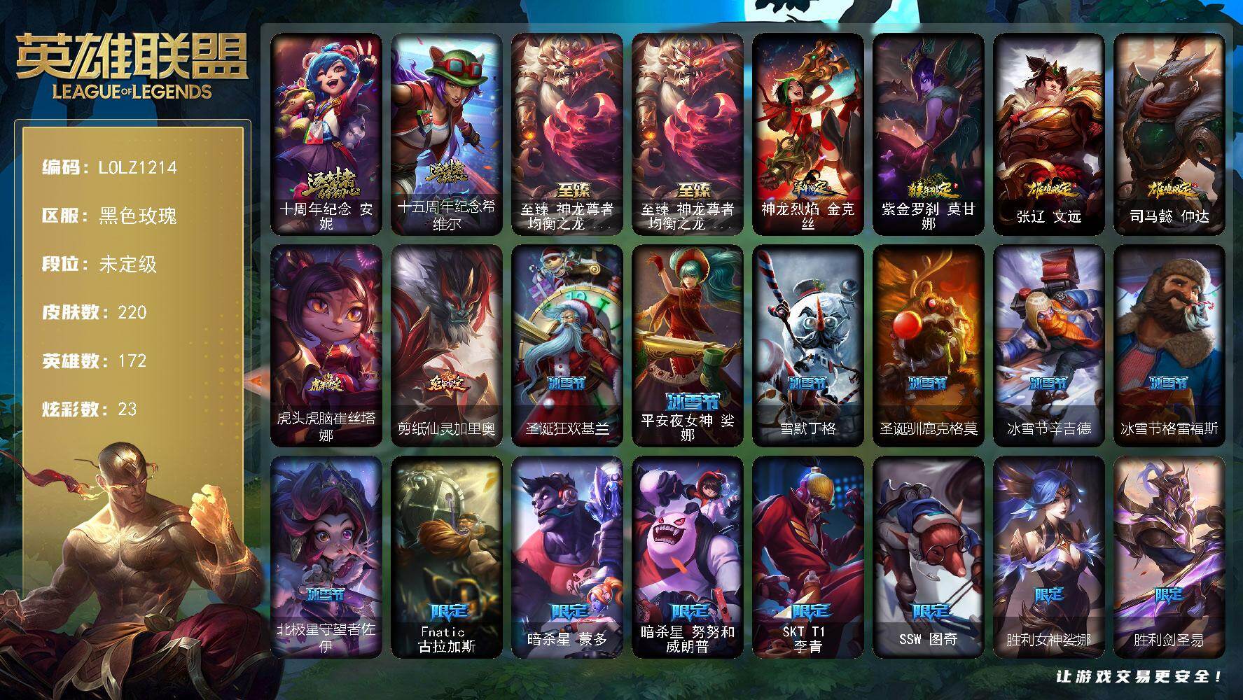 172英雄/220皮肤/3神话/32限定/2臻彩/23炫彩/19传说/55史诗/未定级