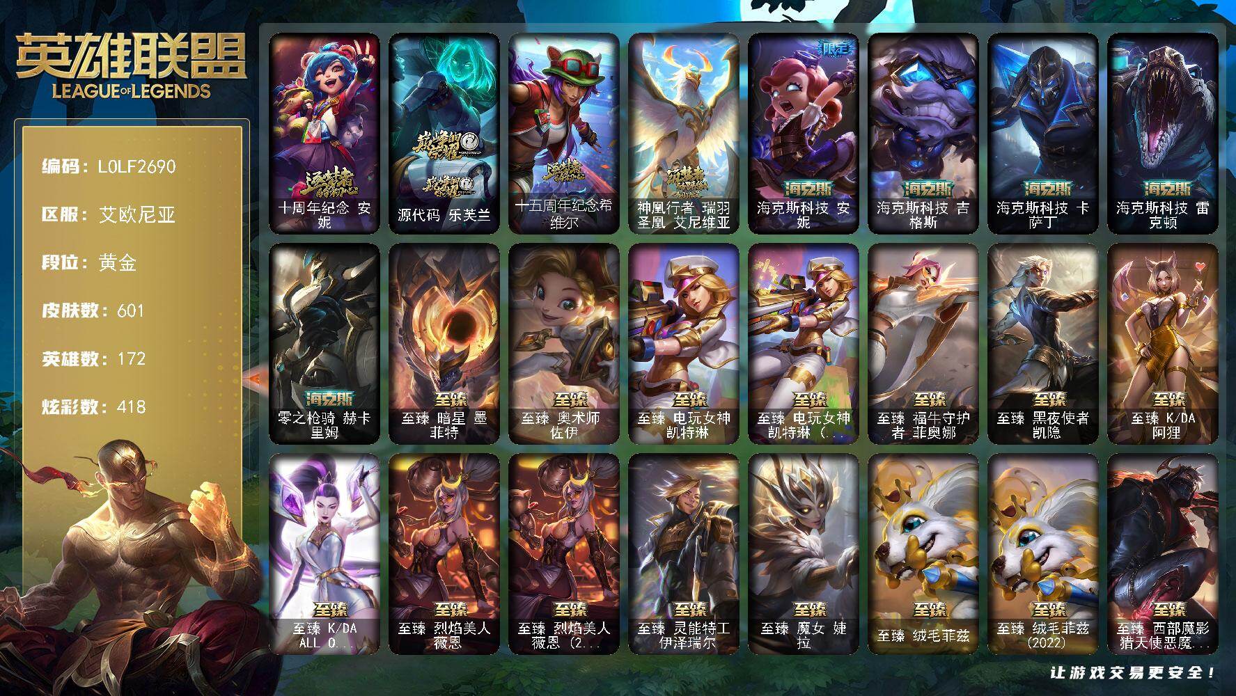 172英雄/601皮肤/3终极/30神话/89限定/21臻彩/418炫彩/65传说/138史诗