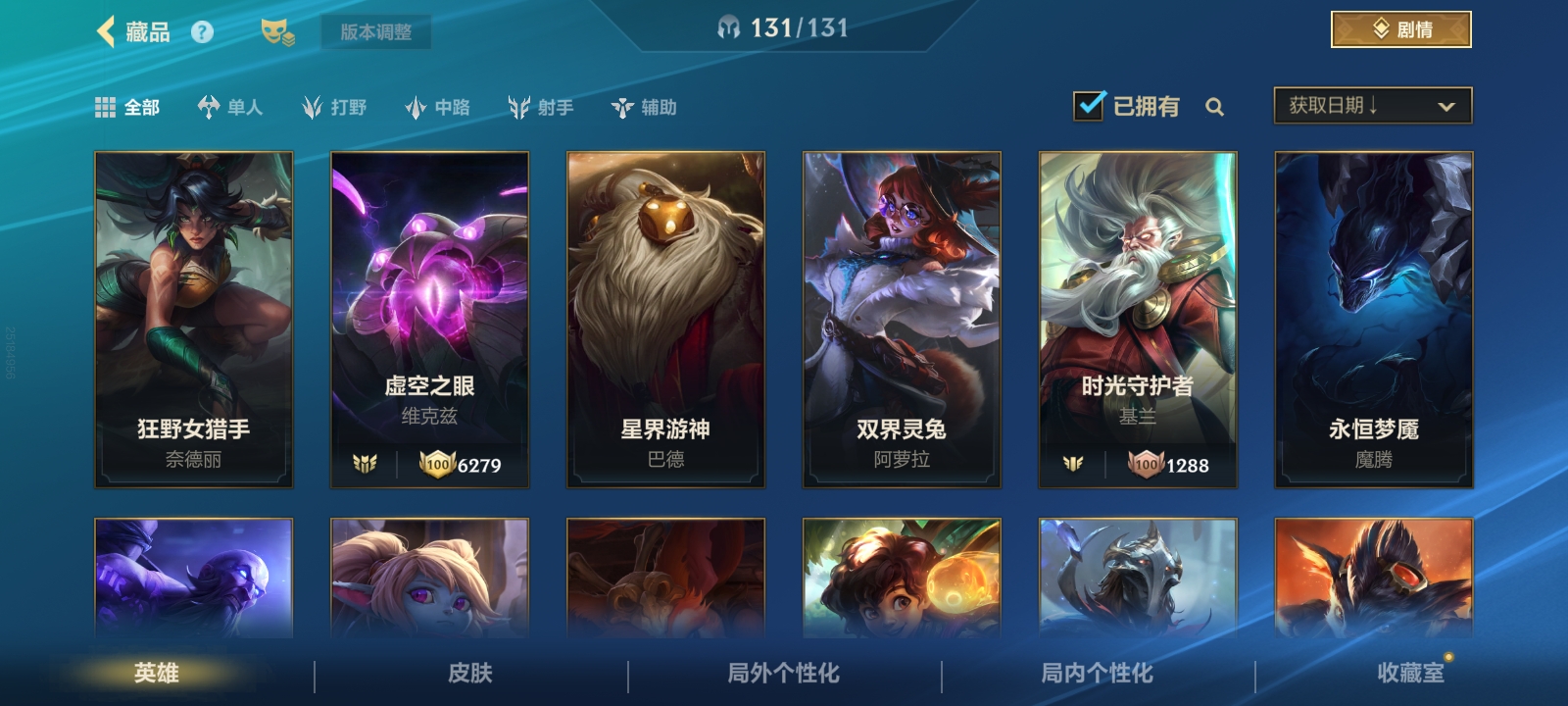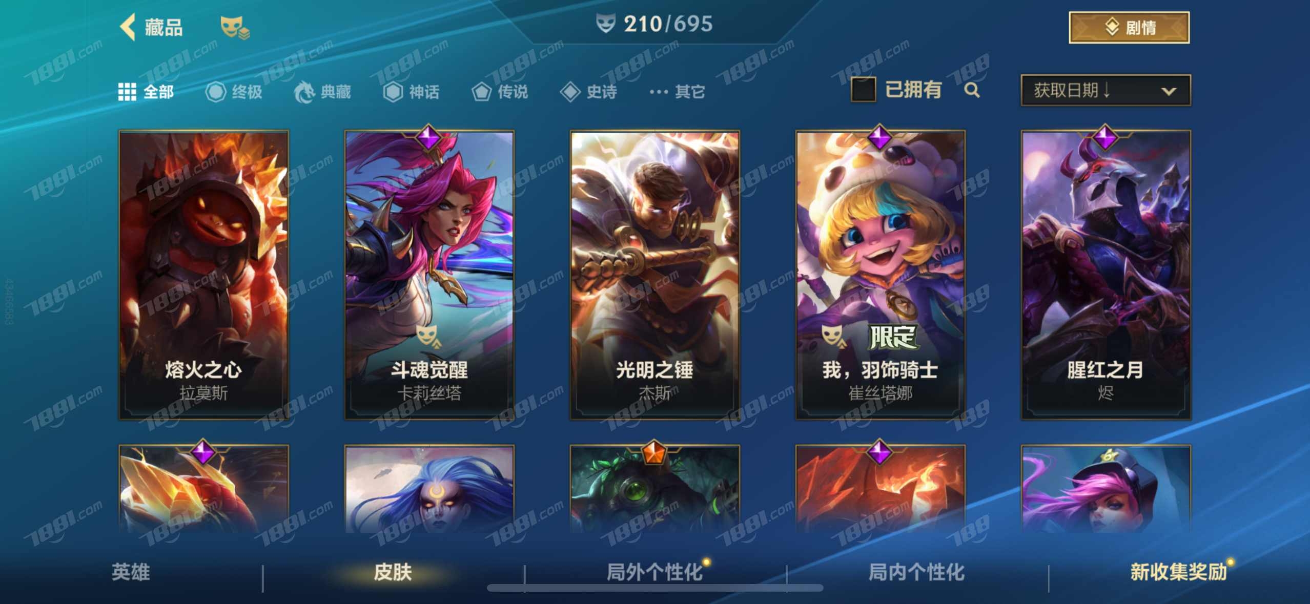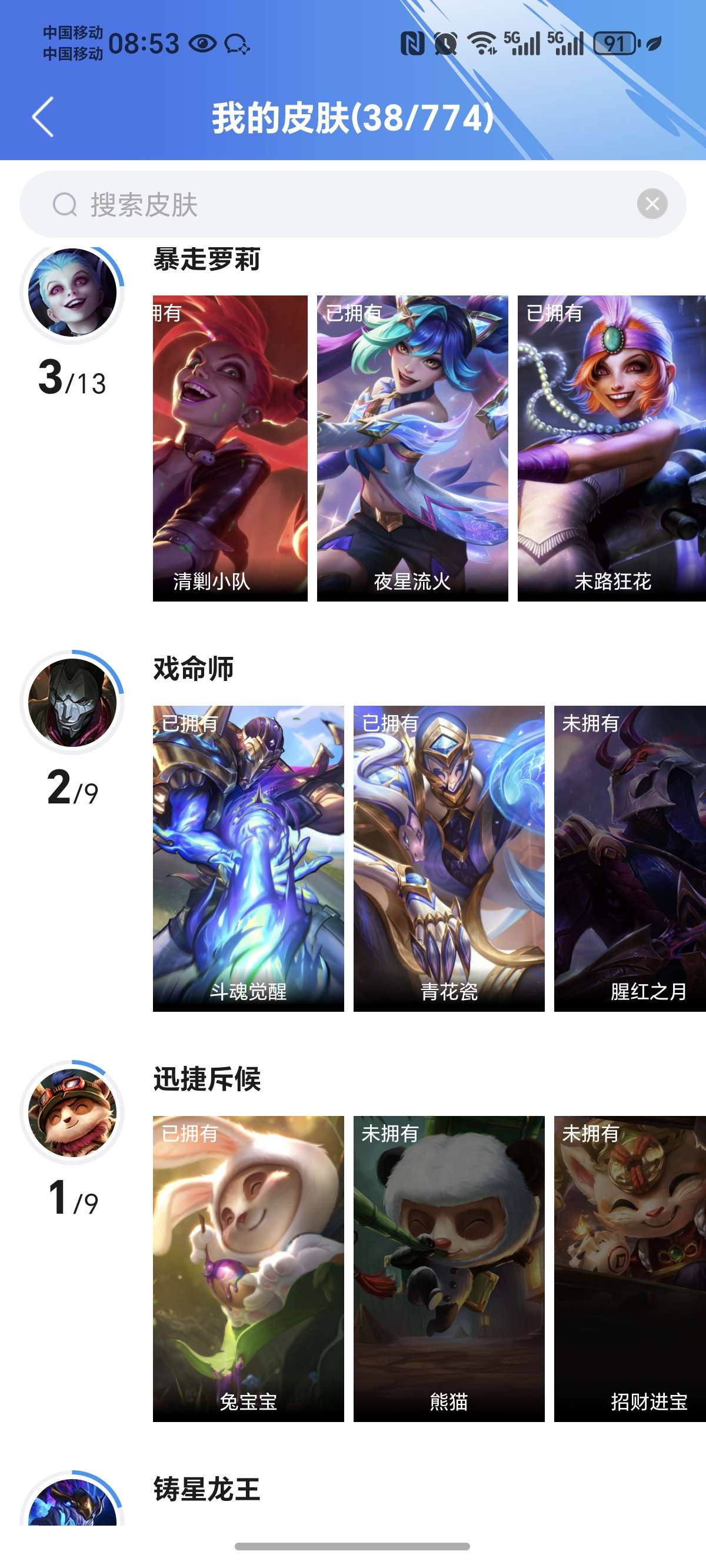 英雄联盟手游(lol)【安卓微信】没时间玩了,644个皮肤