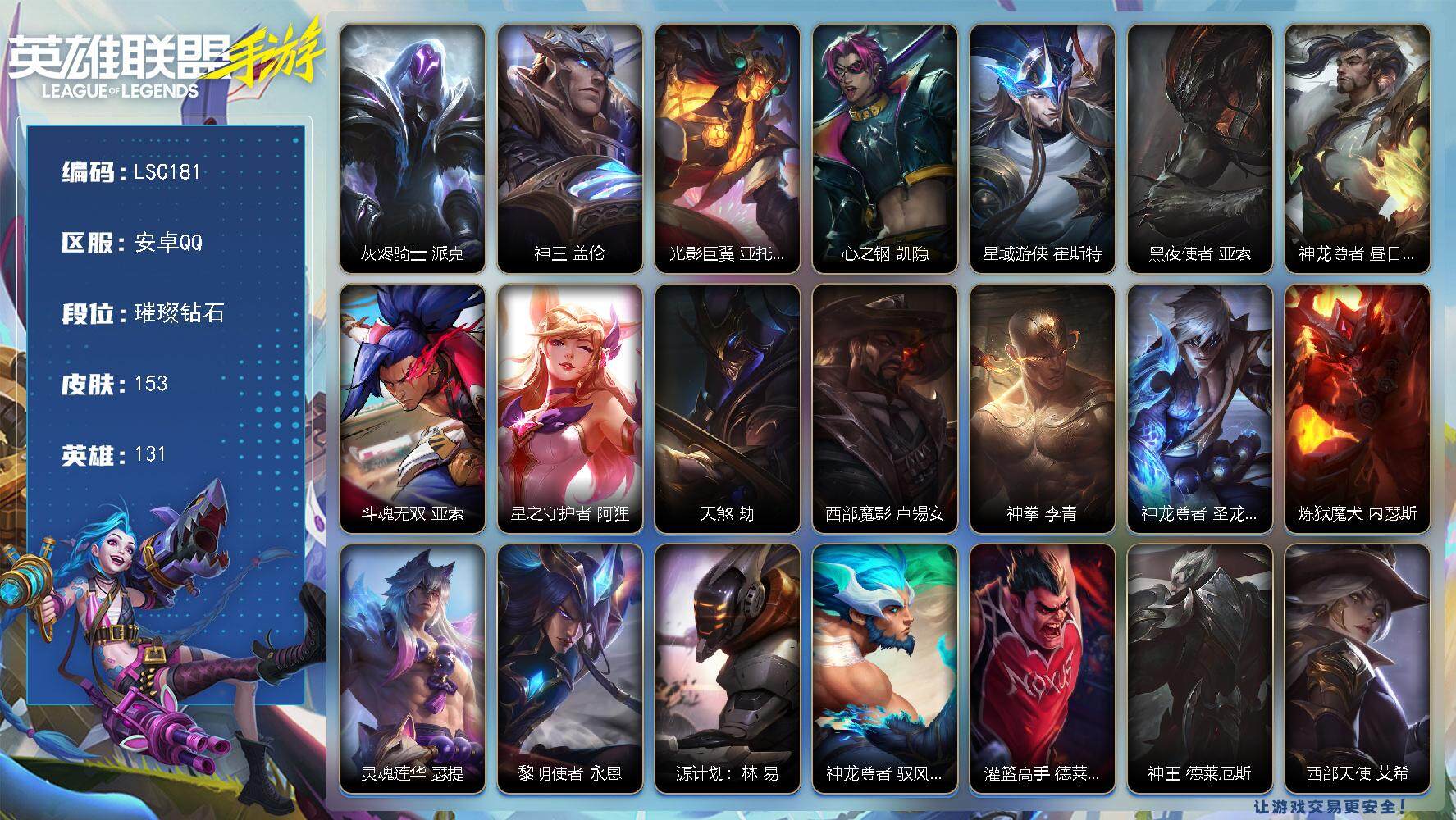 英雄联盟手游(lol)【安卓微信】顶级账号优质皮肤,欢迎光临