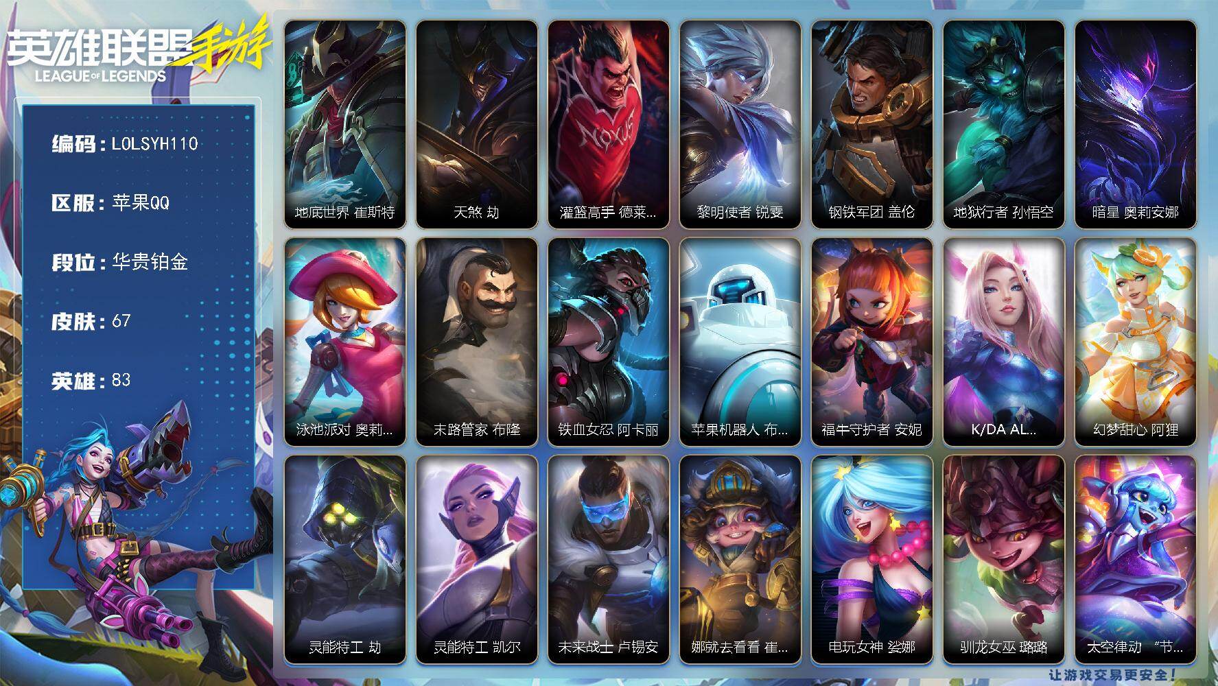 83英雄/67皮肤/华贵铂金/地底世界 崔斯特/天煞 劫