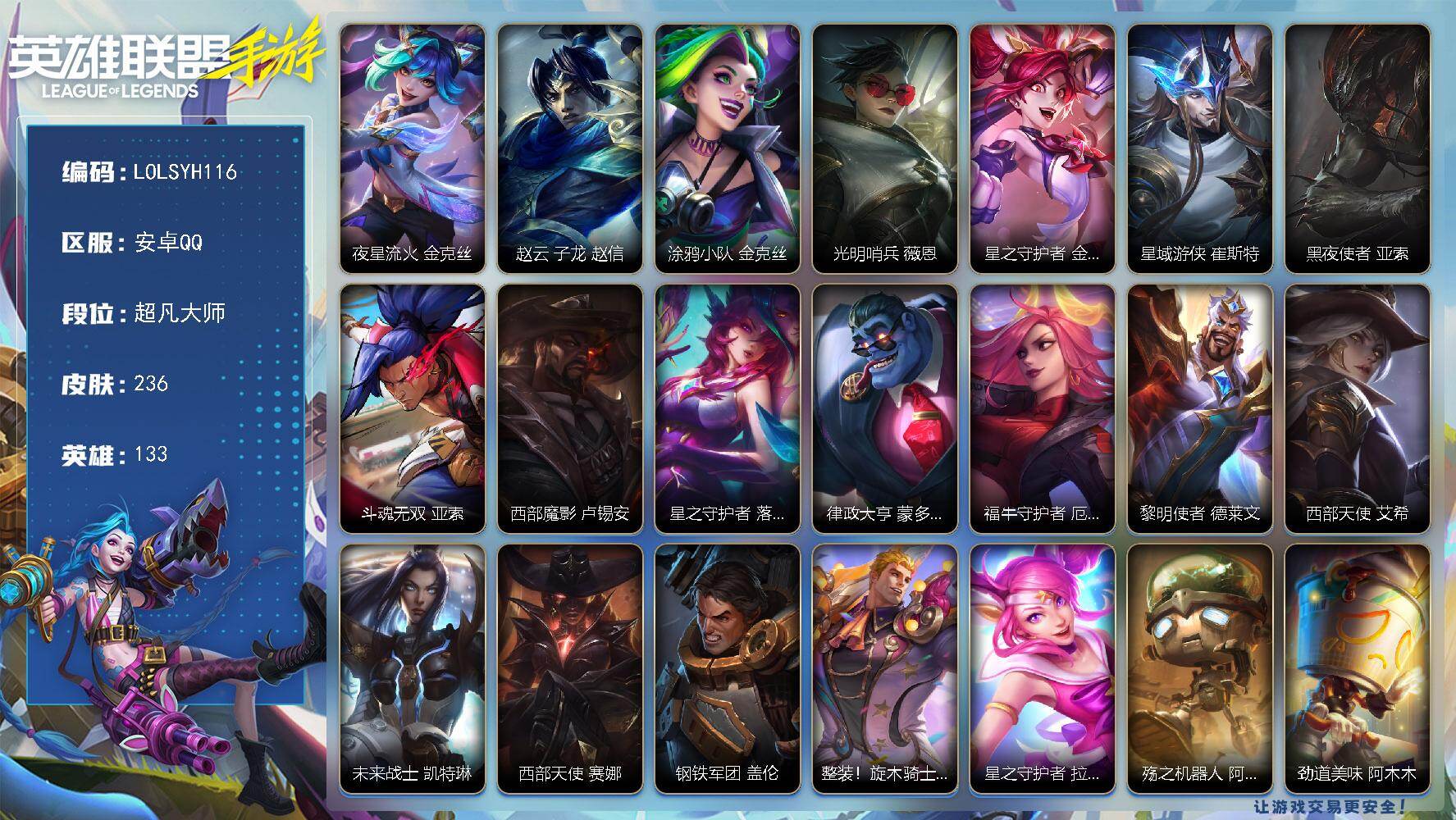 133英雄/236皮肤/超凡大师/夜星流火 金克丝/