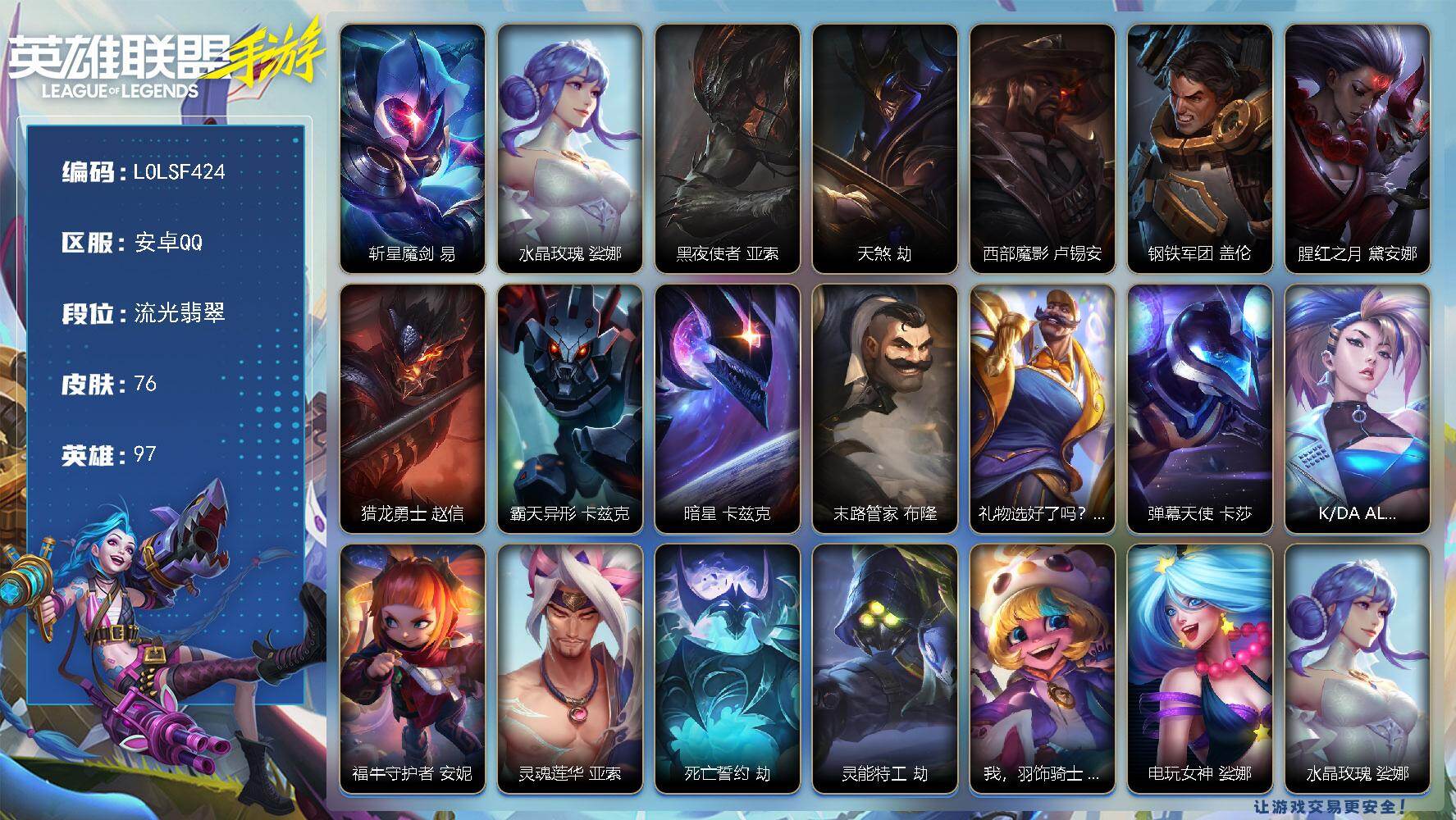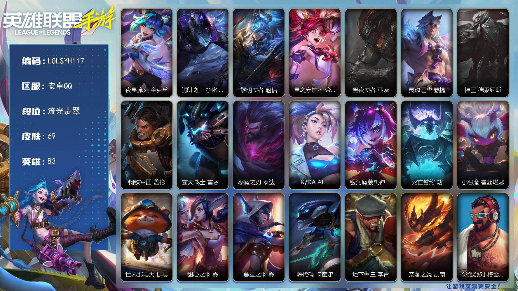 S72P3 号 英雄90 皮肤79 9传说/31史诗/ 流光翡翠Ⅲ