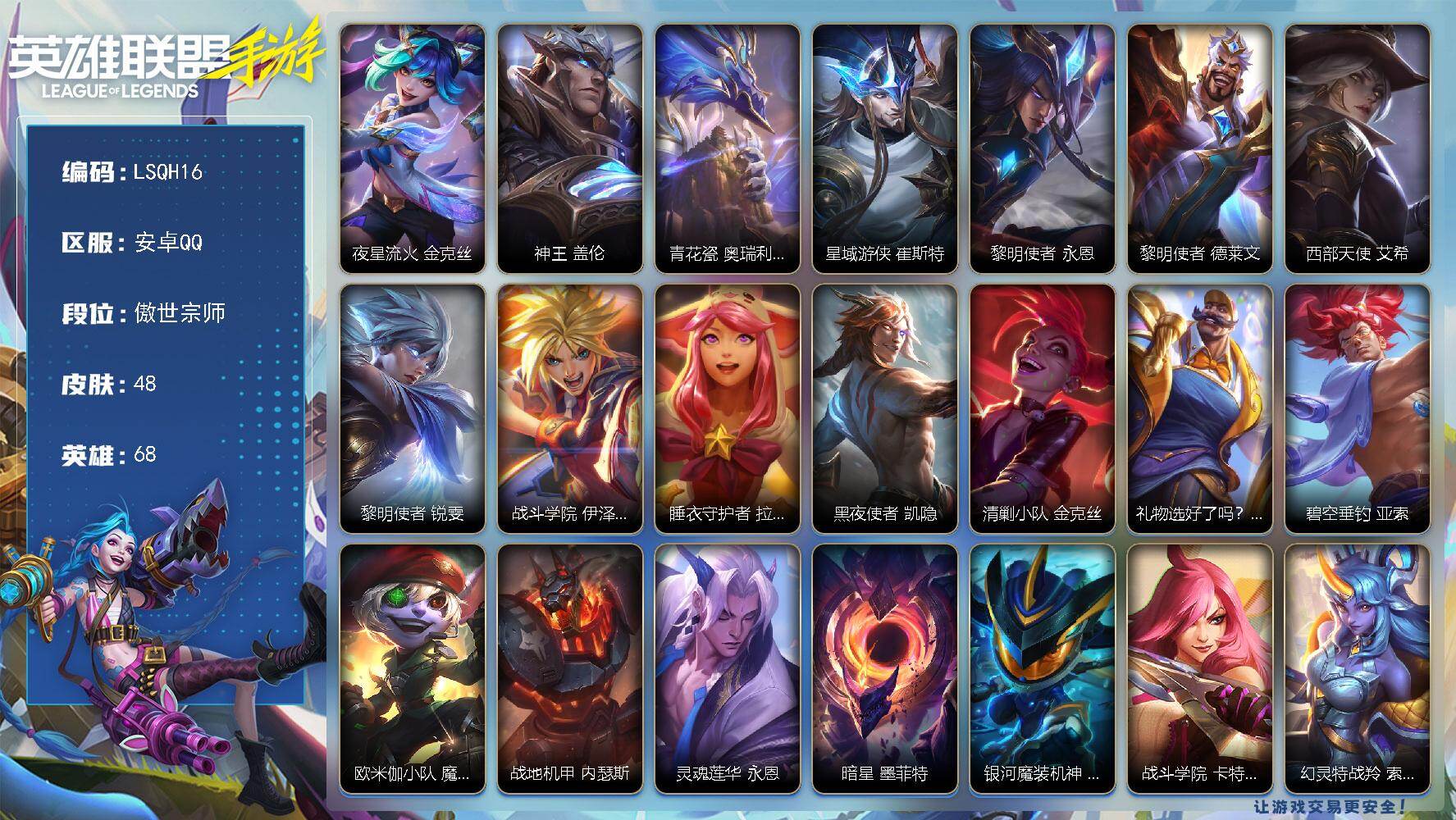 68英雄/48皮肤/1神话/8传说/傲世宗师