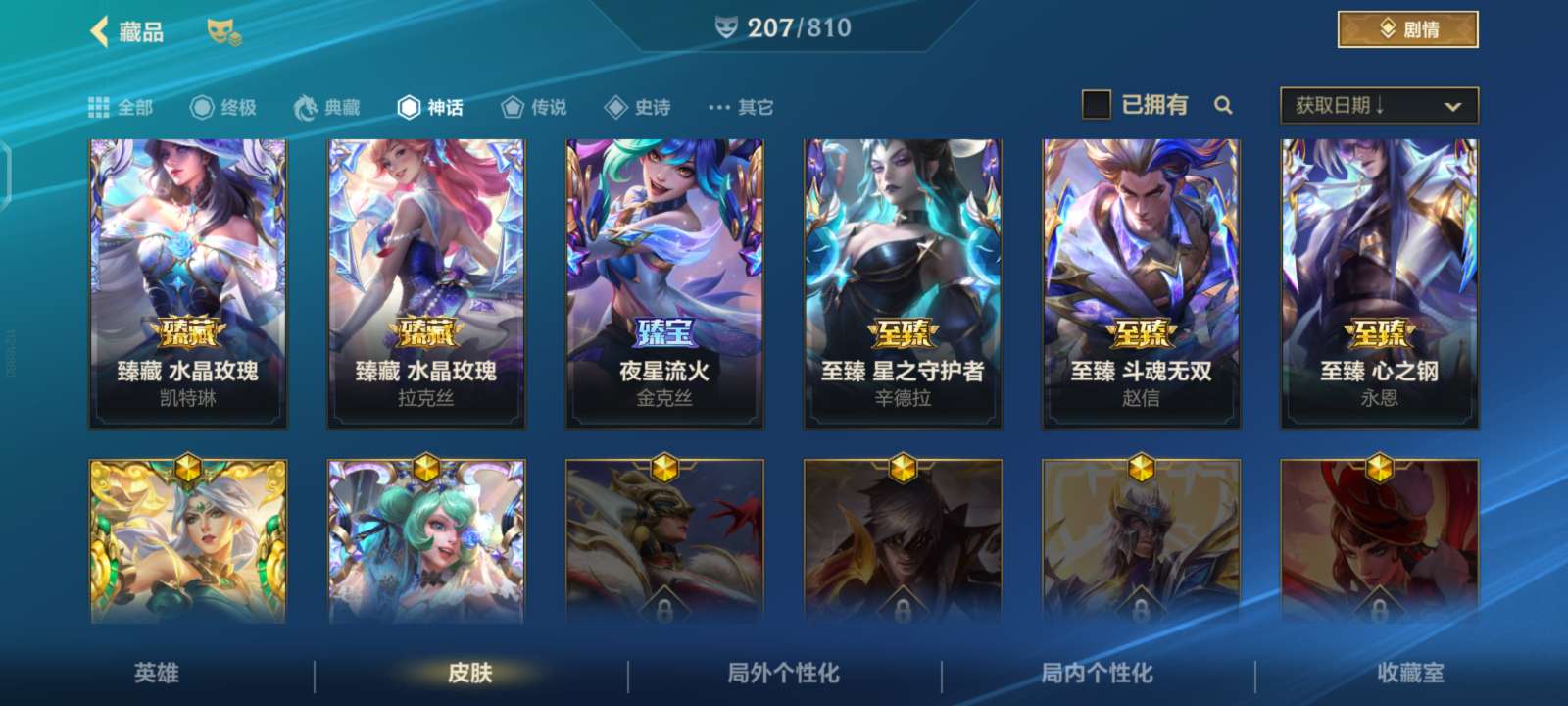 135英雄/705皮肤/2典藏/44神话/94传说/412史诗/荣耀黄金/超武乾坤德莱厄斯