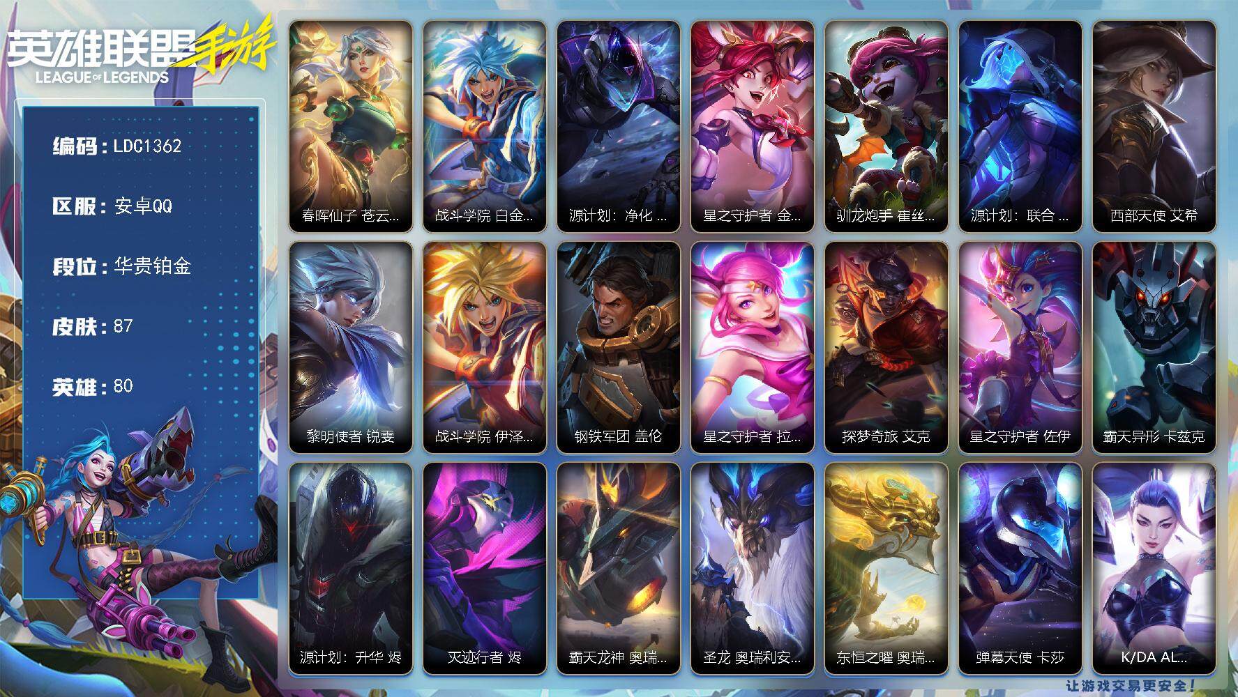 80英雄/87皮肤/2神话/7传说/36史诗/华贵铂金